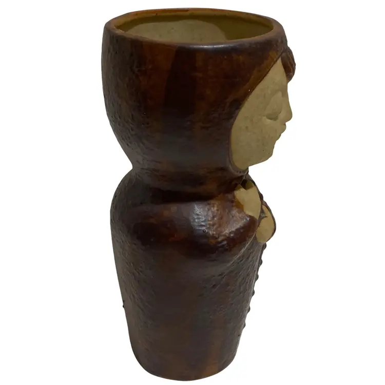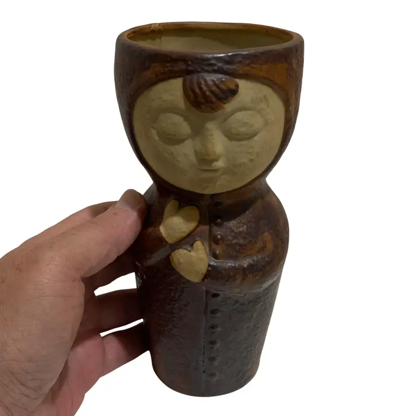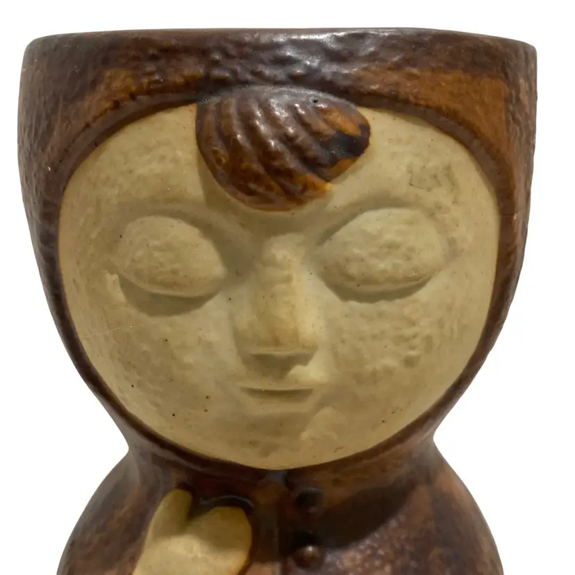 Vintage UCTCI Boy Child Face Art Pottery Vase Japan MCM 7” Tall 7” T X 3 1/4” W at top rim Used pre owned. No chips or cracks. Thanks and enjoy…