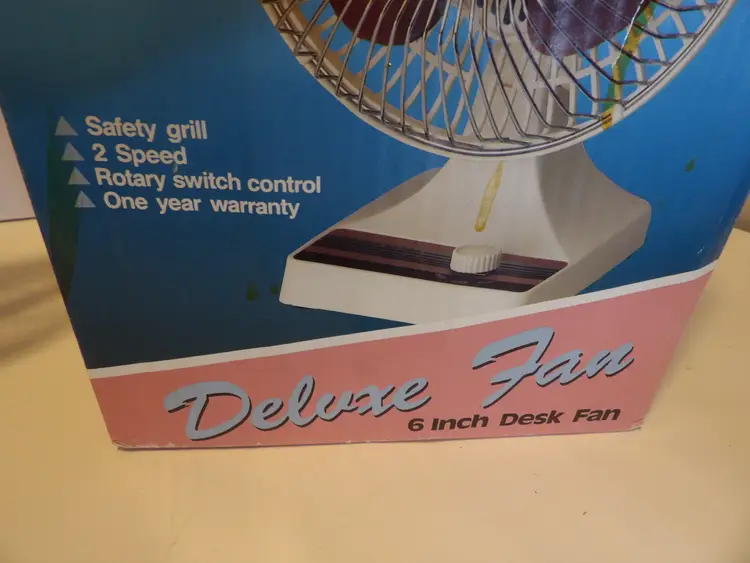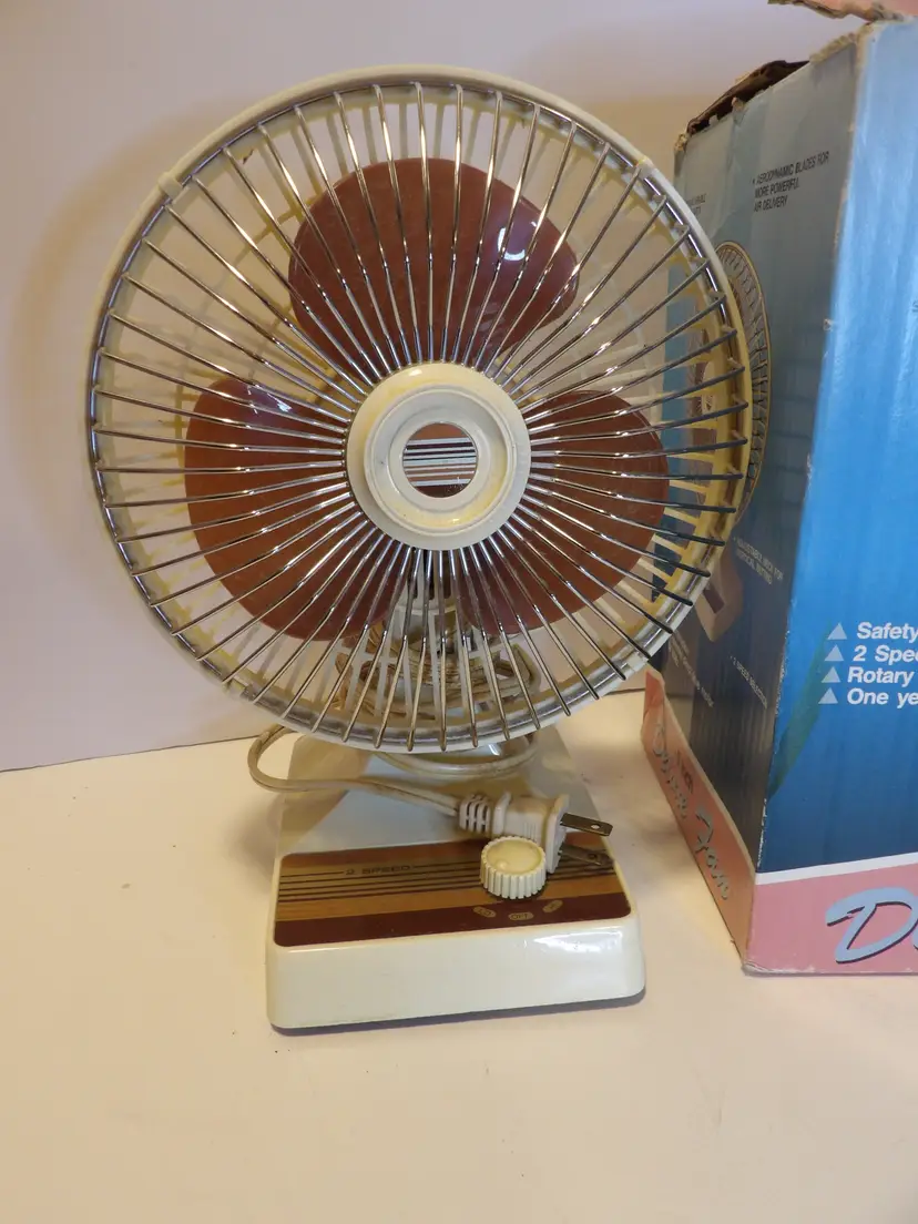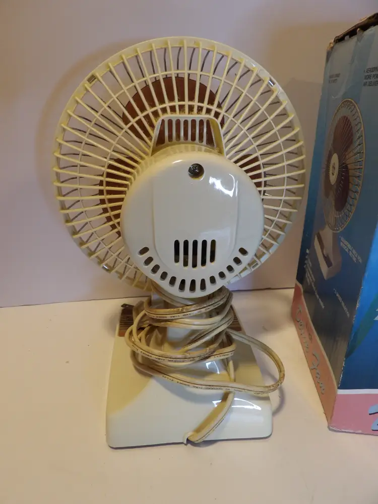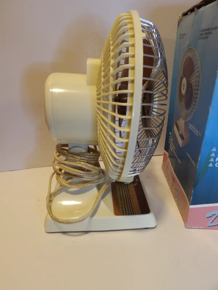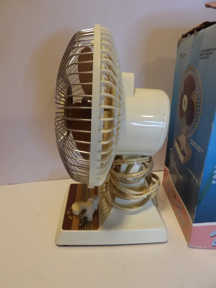 This is a vintage, tested and working desk fan. It comes with the box, instructions. and tested. Please see pictures. (Scarlett)