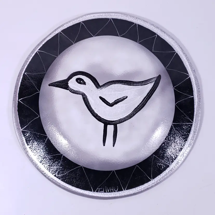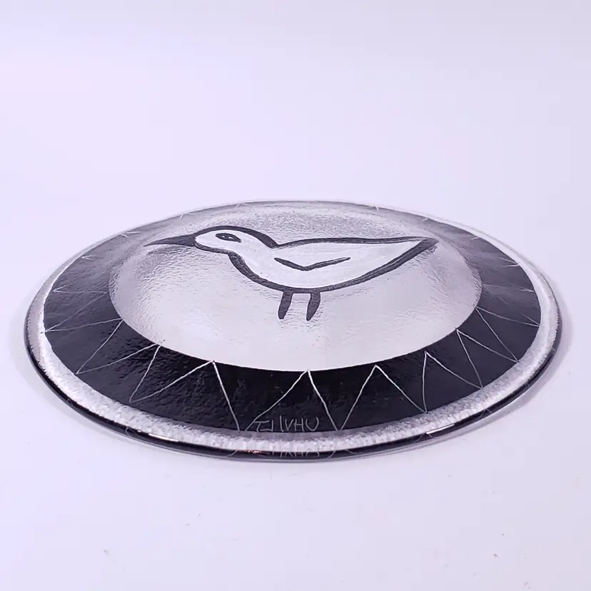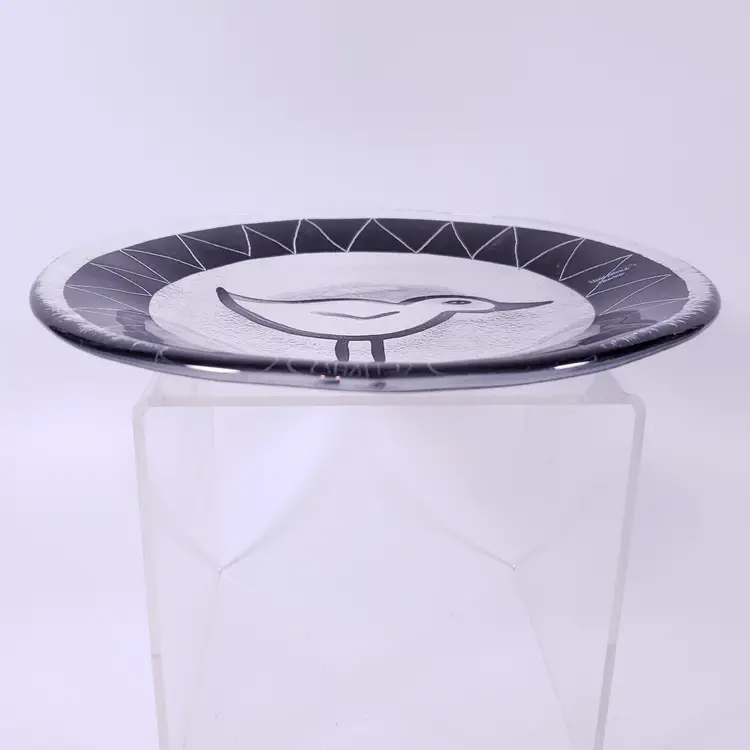 Vintage ULRICA HYDMAN-VALLIEN KOSTA BODA Black White Bird ART GLASS PLATE