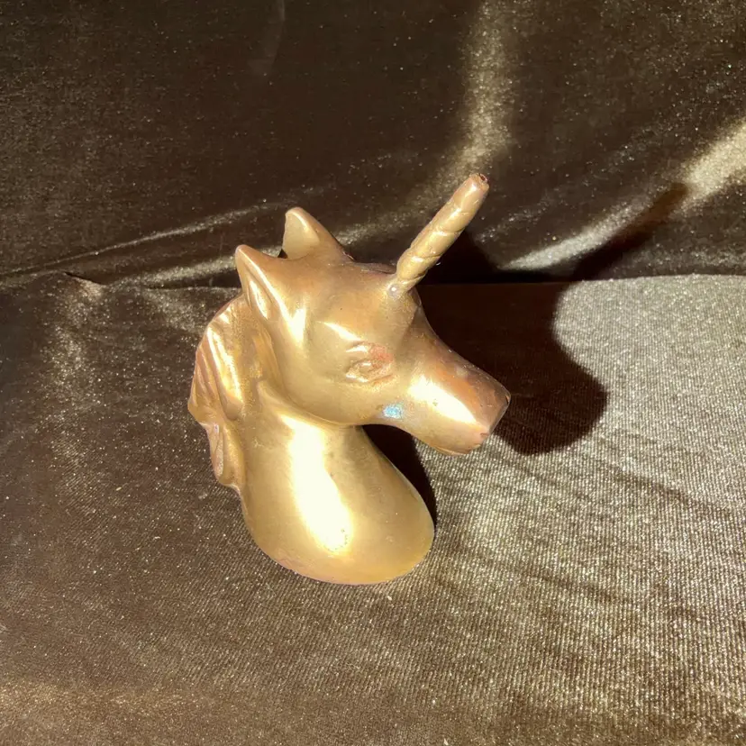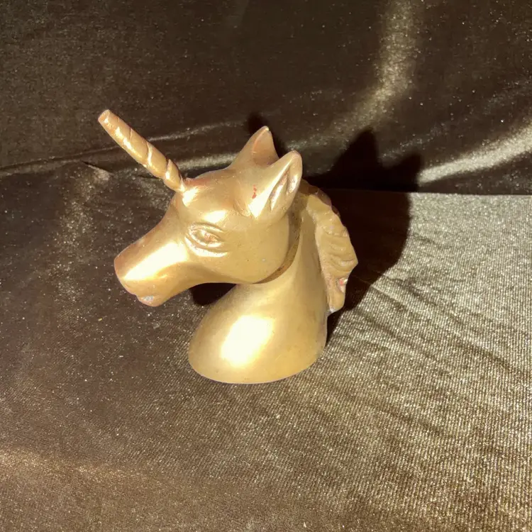 Vintage Unicorn Brass Head Bust Figurine. ~2” x 3” Tall