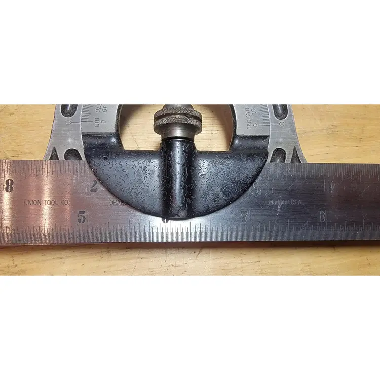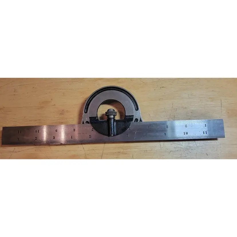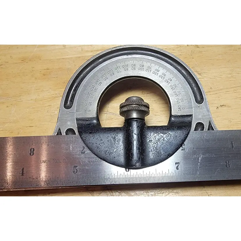 Up for sale is a really nice Universal Bevel Protractor and Level with 12" Hardened Steel Ruler. It says Union Tool Co. tempered No. 4. It's in great shape. It's a heavy machinist tool and the bubble is all intack and works perfectly . Look at pictures for best description