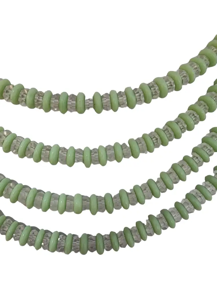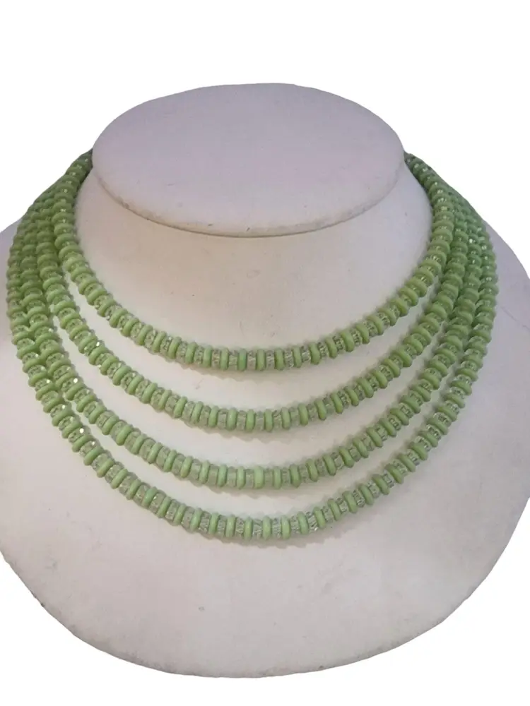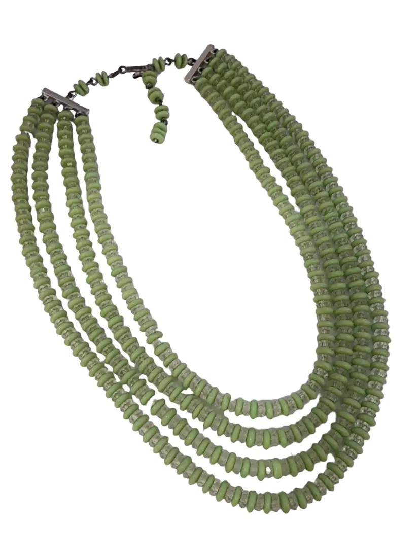 Vintage Unique Crystal & Glass Rounded 4 Strand Necklace (A4521)