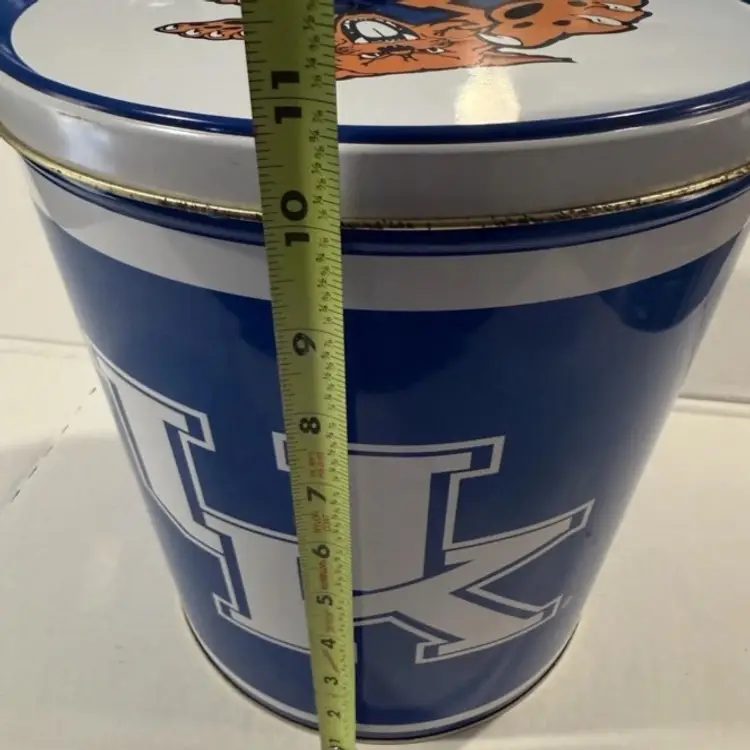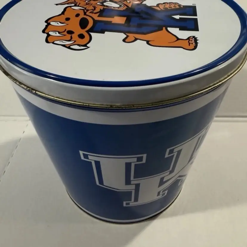Vintage University Of Kentucky Wildcats Old Popcorn Tin Trash Can Man Cave Rare