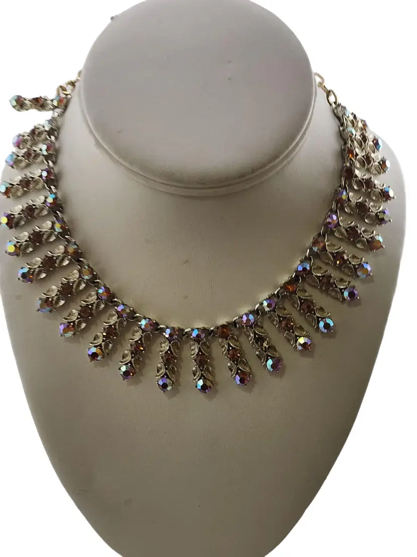 Vintage Unsigned Ab Rhinestone Bib Collar Necklace (A6319)