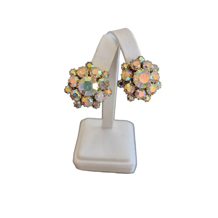 Vintage Unsigned AB Rhinestone Clip Earrings (A2473)