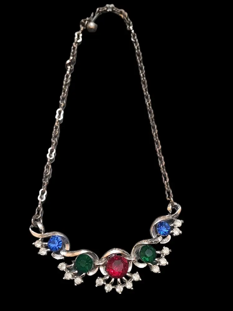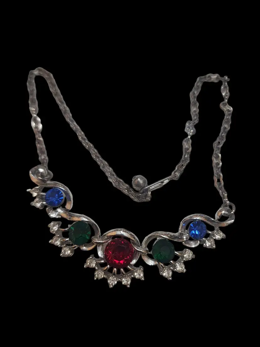 Vintage Unsigned Glass/Rhinestone Necklace (A3996)