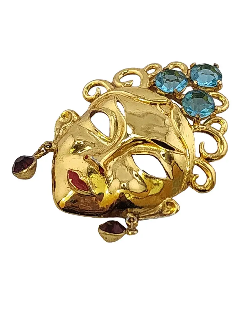 Vintage Unsigned Lady Face Mask Fur Clip (A3866)