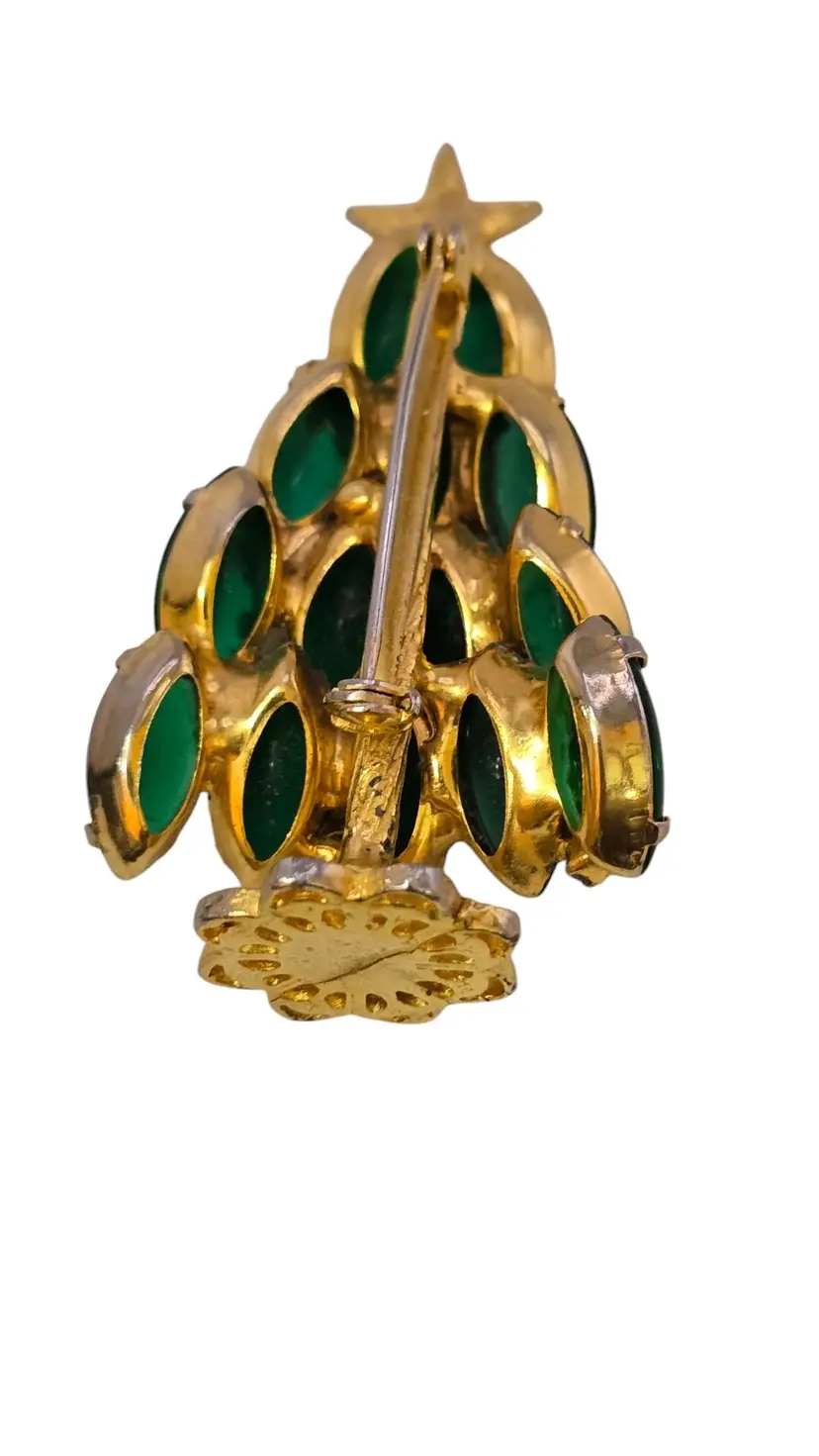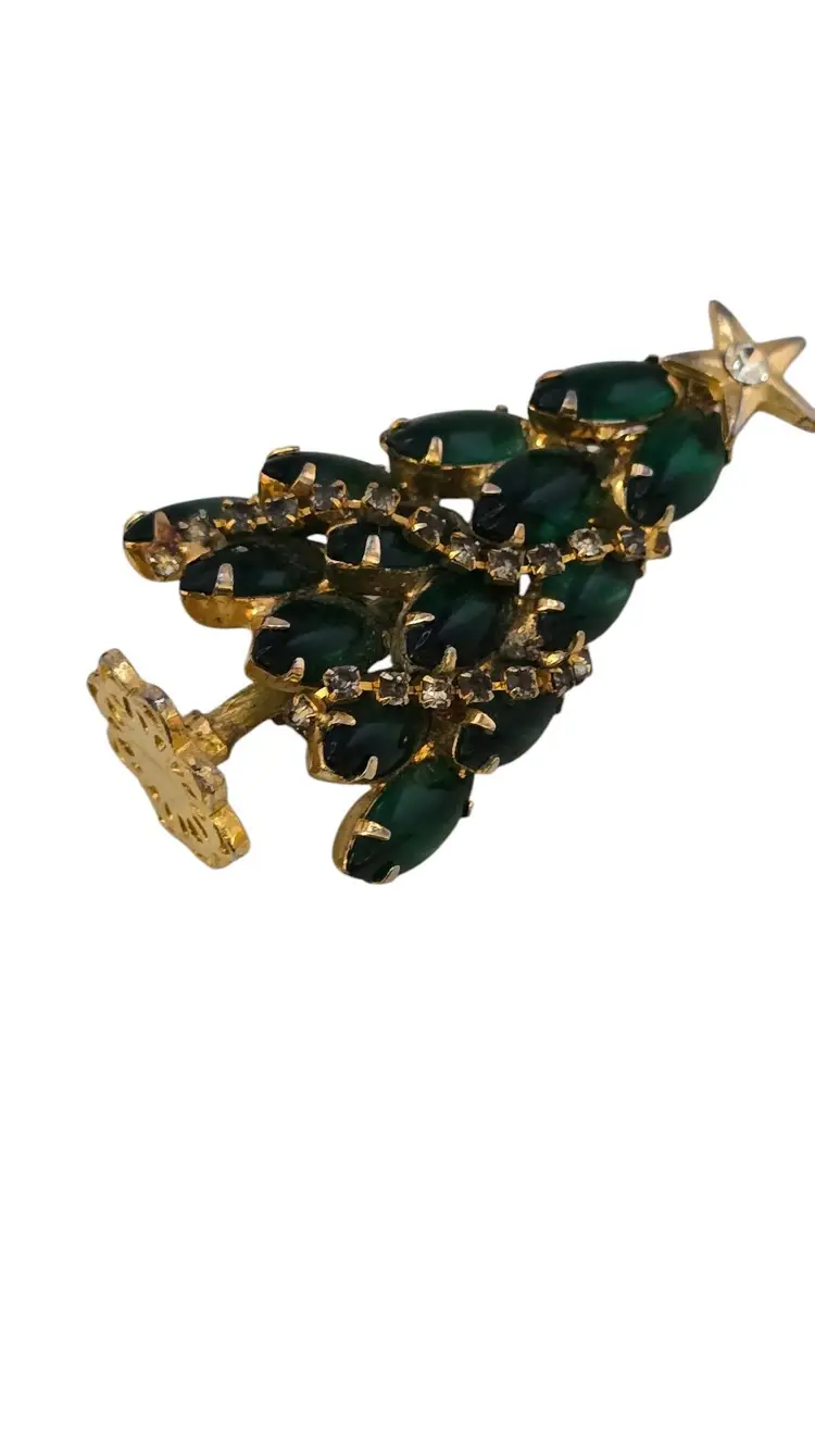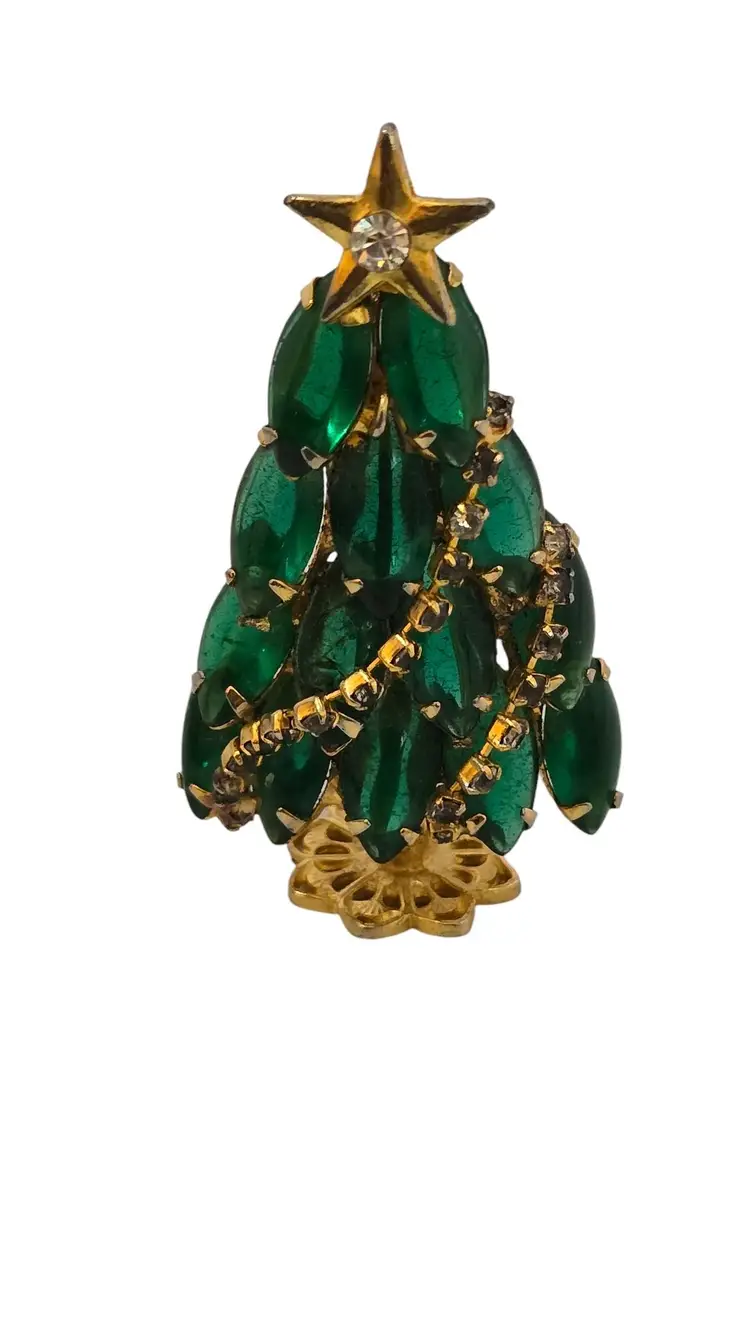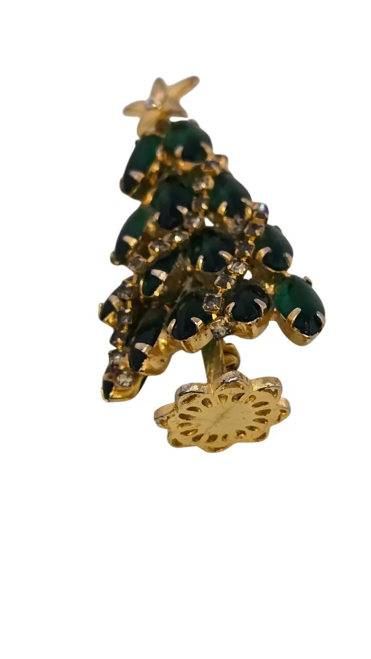 Vintage Unsigned Standing Glass & Rhinestone Christmas Tree Brooch (A8047)