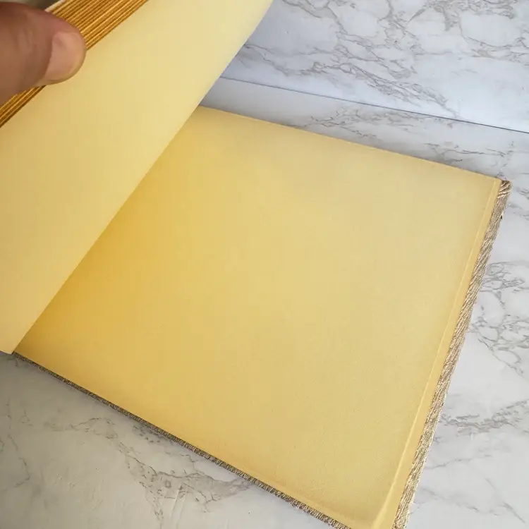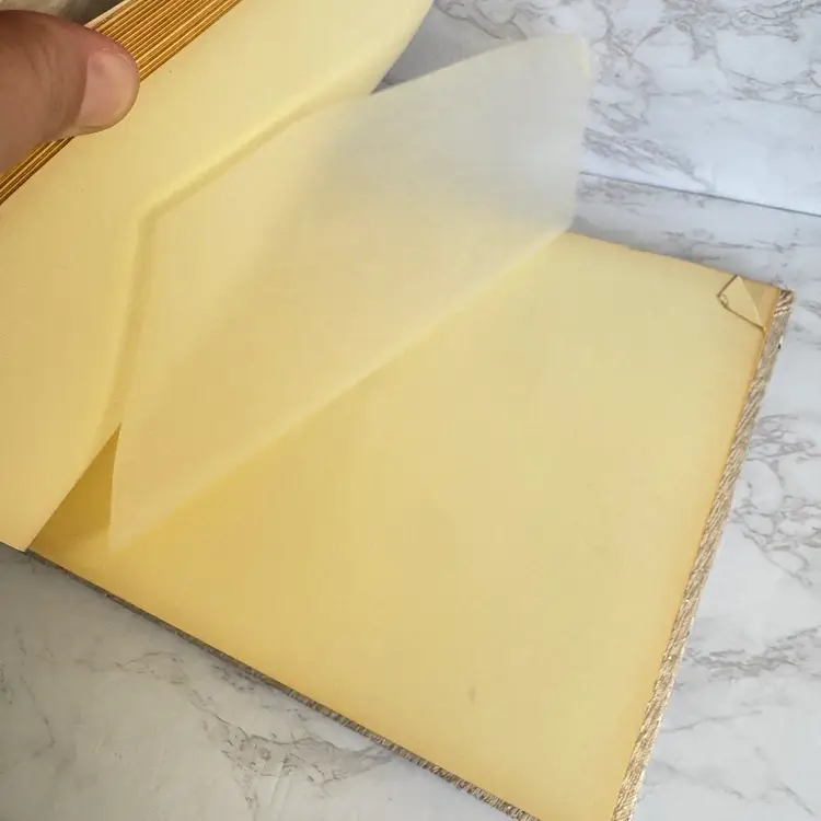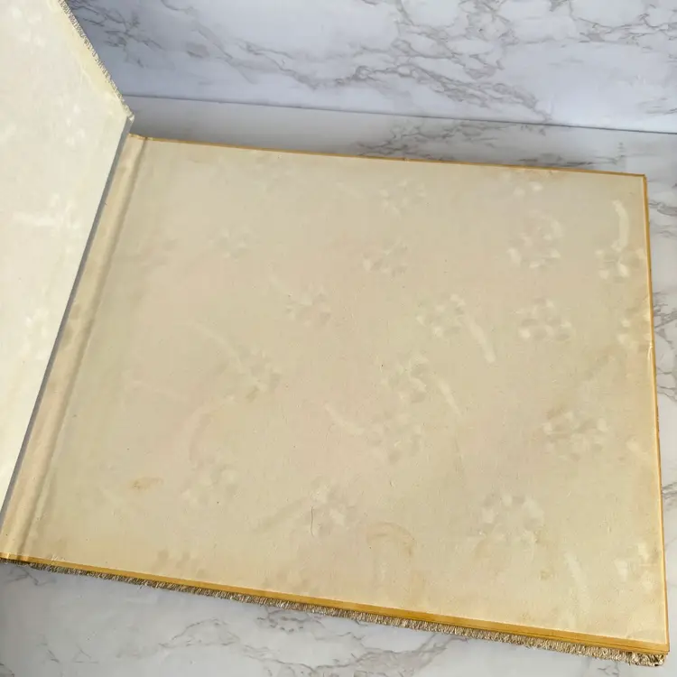 Has areas of wear to the outside. Interior pages are yellowed. Has original tissue paper between pages intact.
