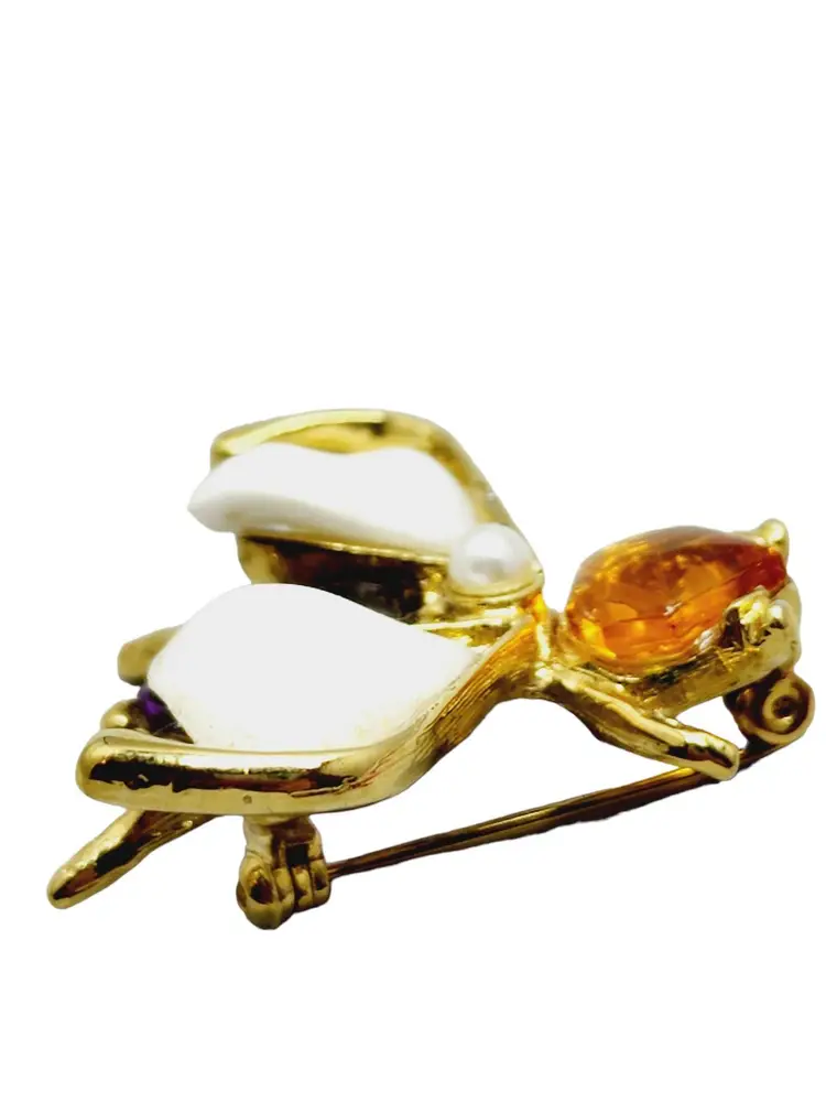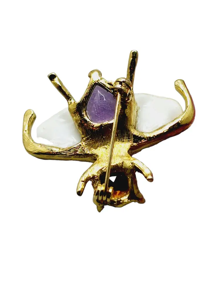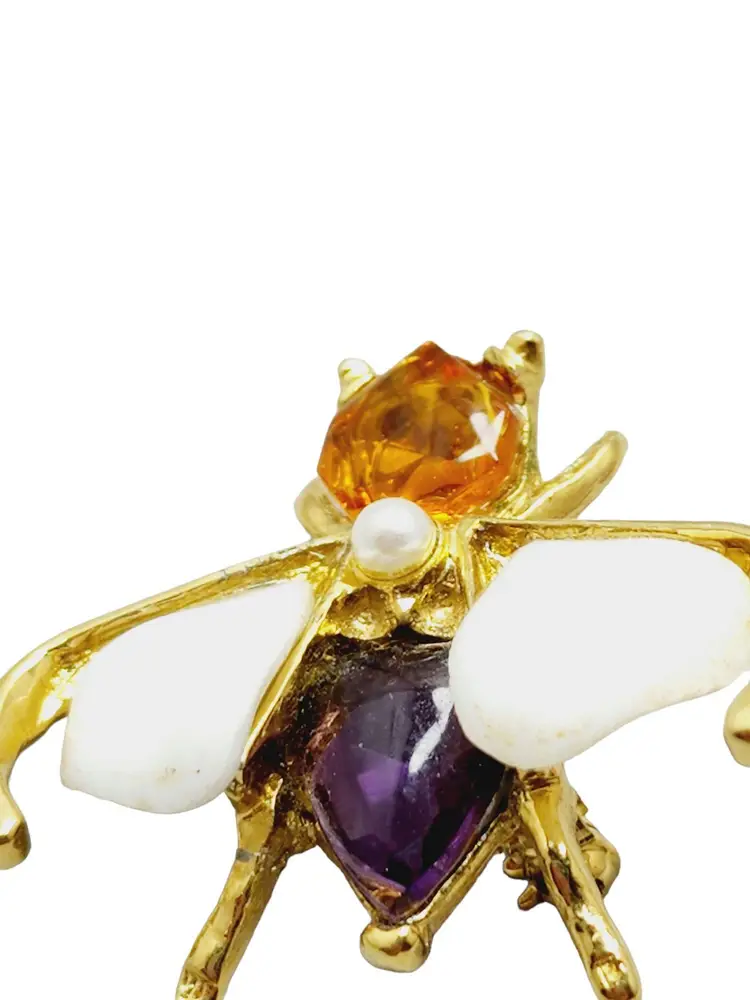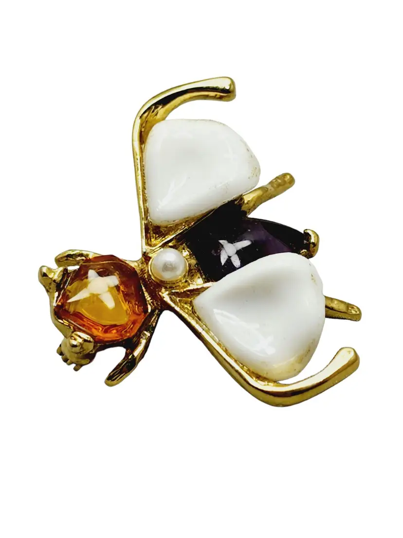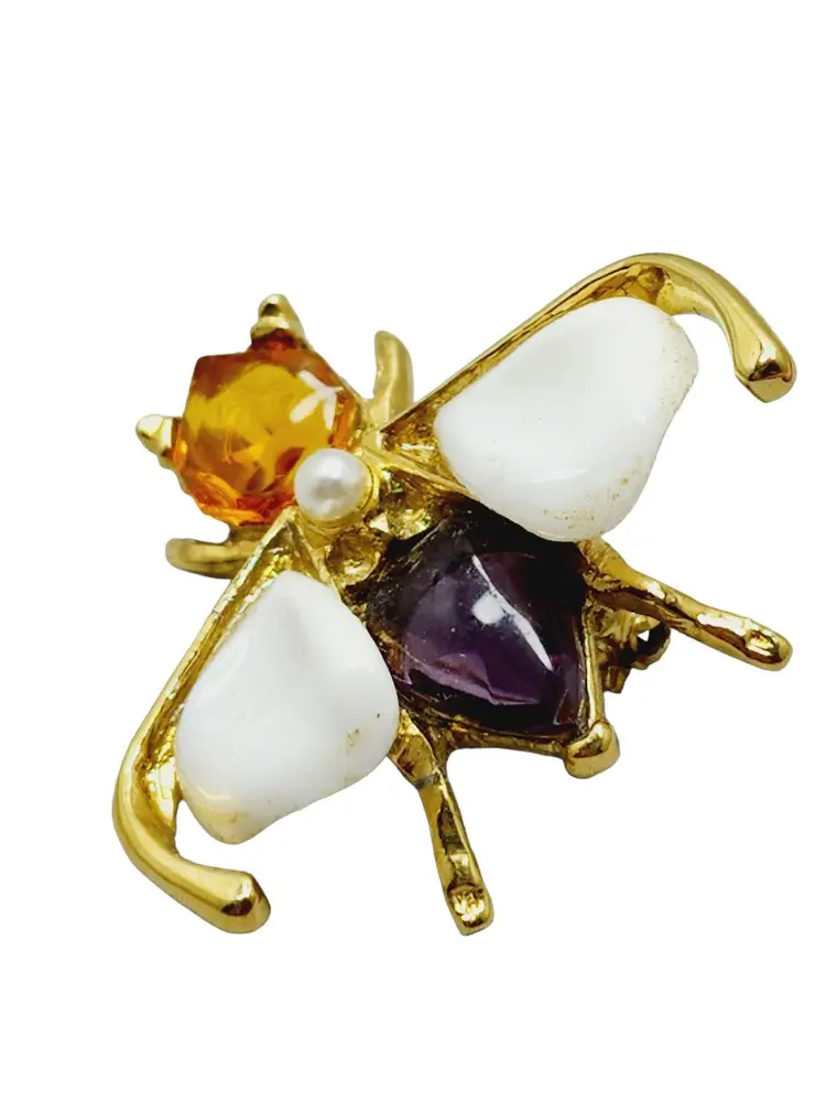 Pretty gold plated bug fly brooch set with beautiful unusual stones. Size: 1.25'' Condition: Very good Era: Circa 1960's Signed: Unmarked