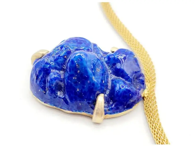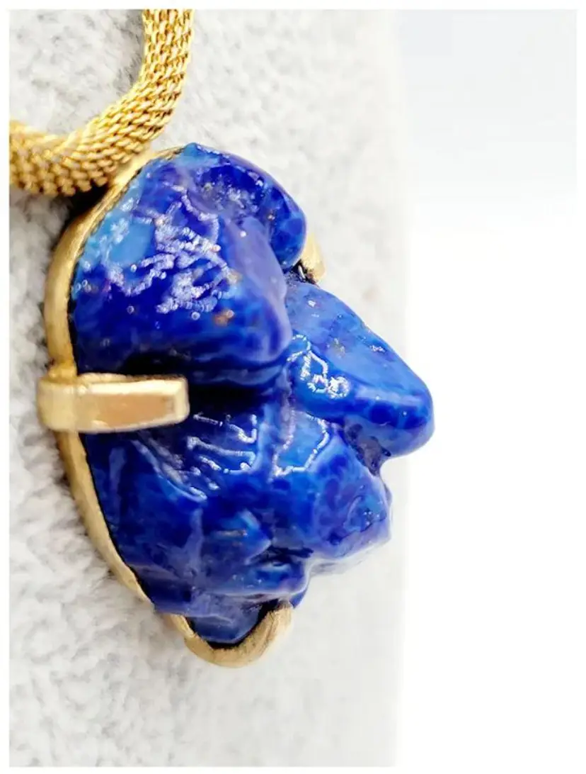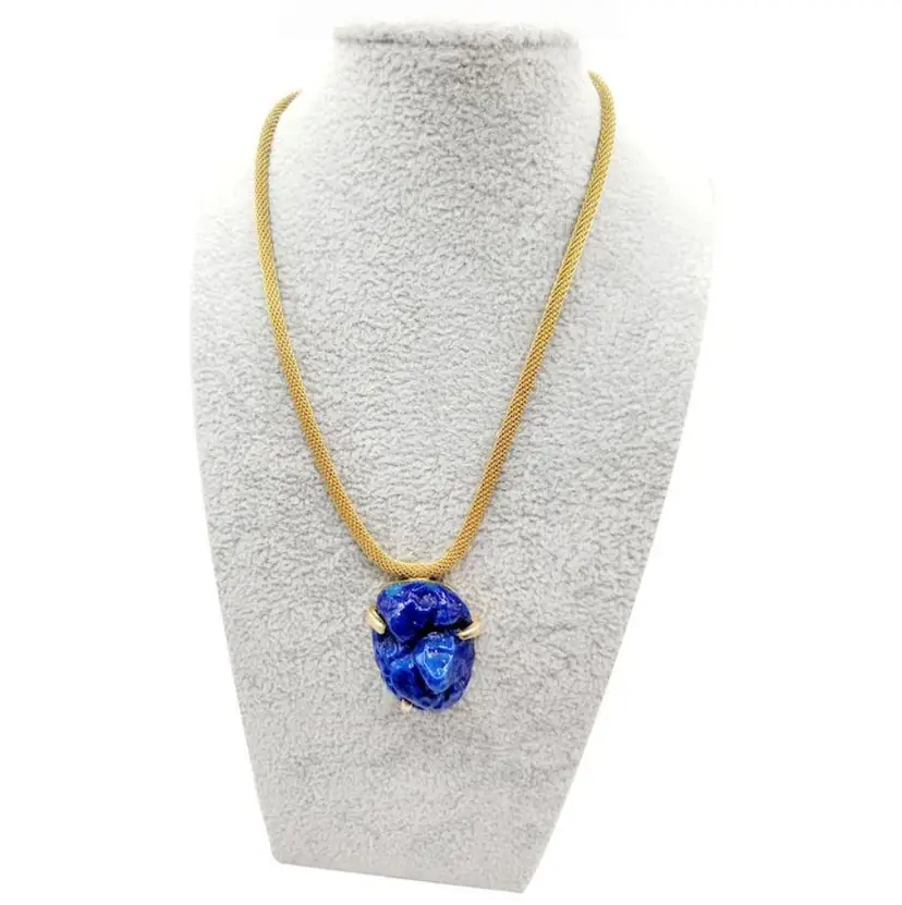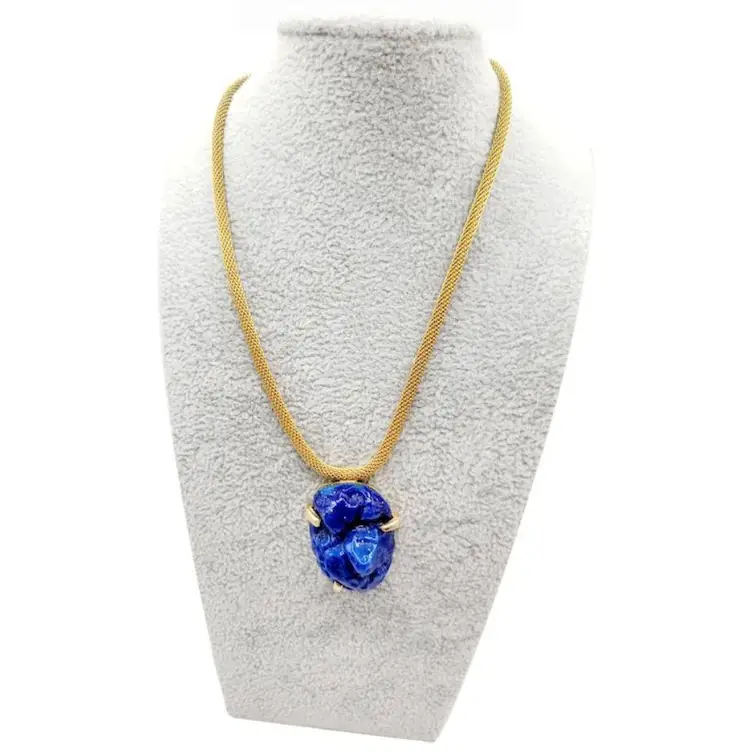 Vintage Unusual Molded Lapis Glass With Fleck Necklace (A2616)