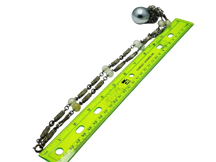 Vintage Unusual Possibly Japan Early Gray Pearl & Rhinestone Drop Necklace