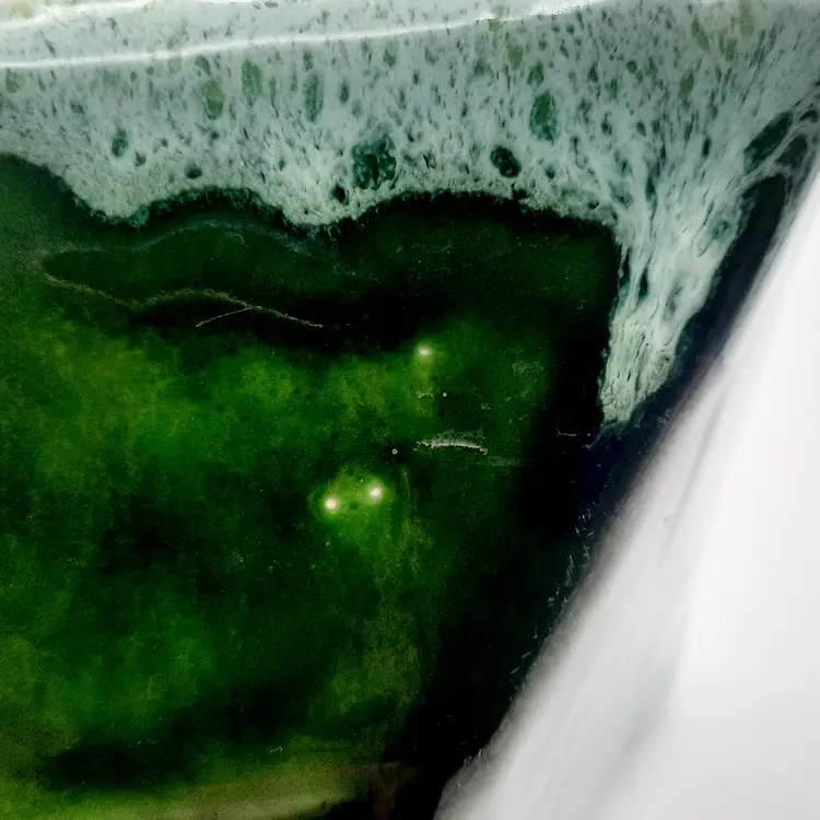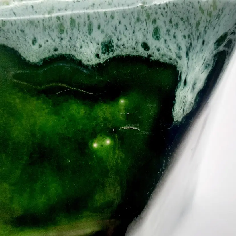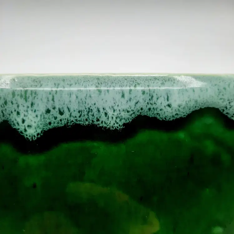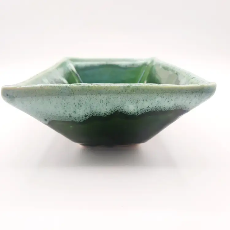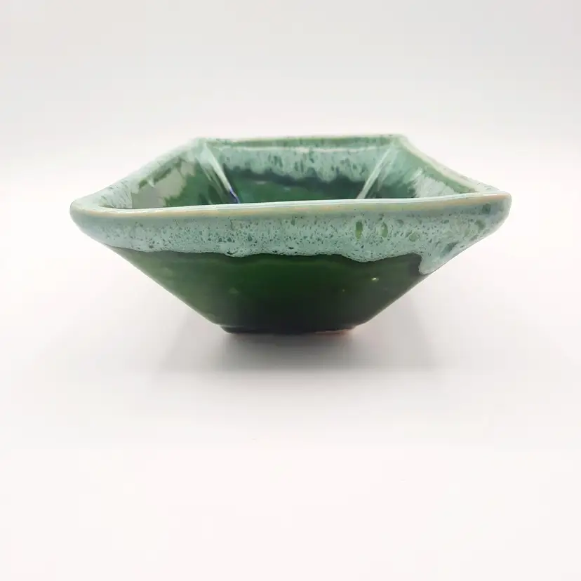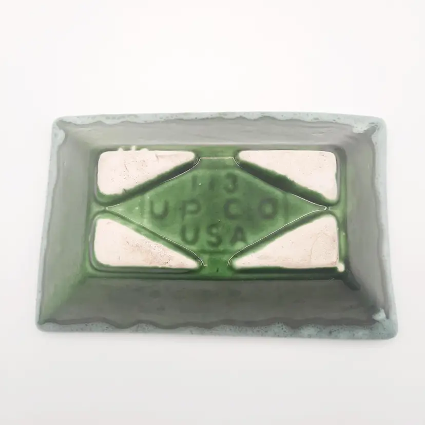 Very neat planter with the 2 tone drip glaze is 8"L x 5"W x 2 1/2"H, does have some wear and oxidation, light spots in glaze look to be from mfg process.