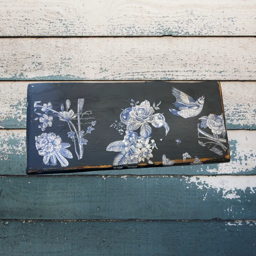 Vintage shelf from the 80s Has 2 sawtooth hangers on back I painted it! Paintings willow bark by Fusion Distressed and waxed Approx 10.5” long