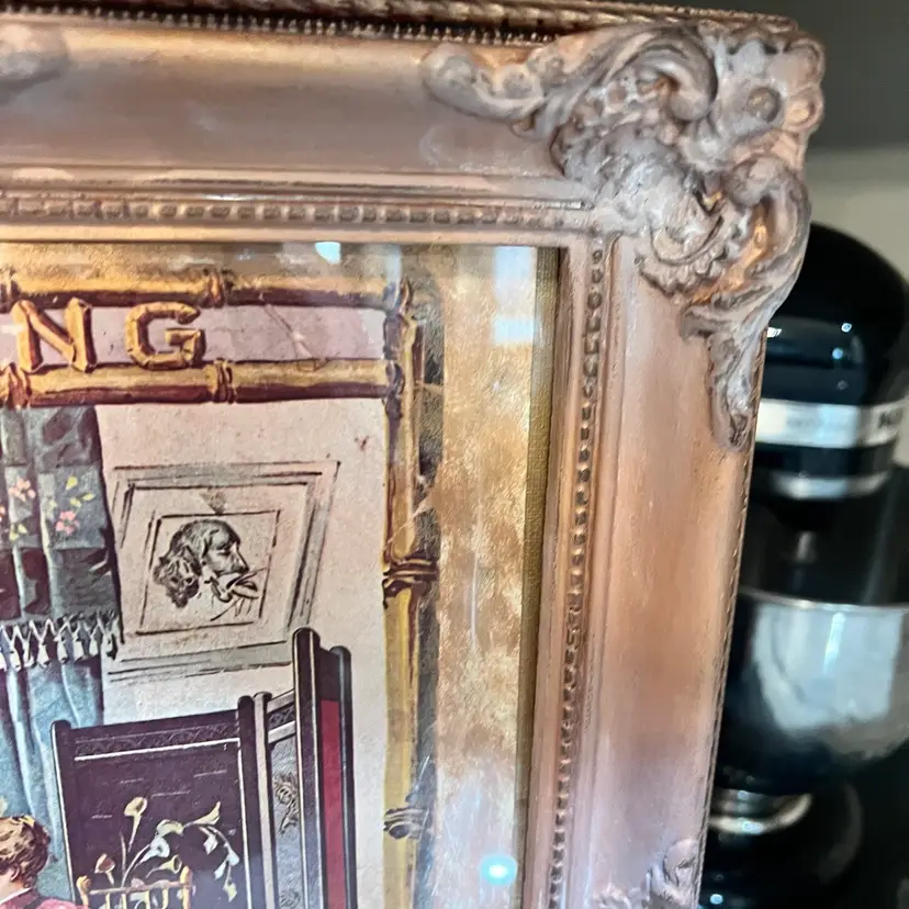 Hand painted by me and matted into this beautiful copper frame ( I painted the frame not litho) Measures approximately 16” wide 16 3/4 long Hangs horizontal