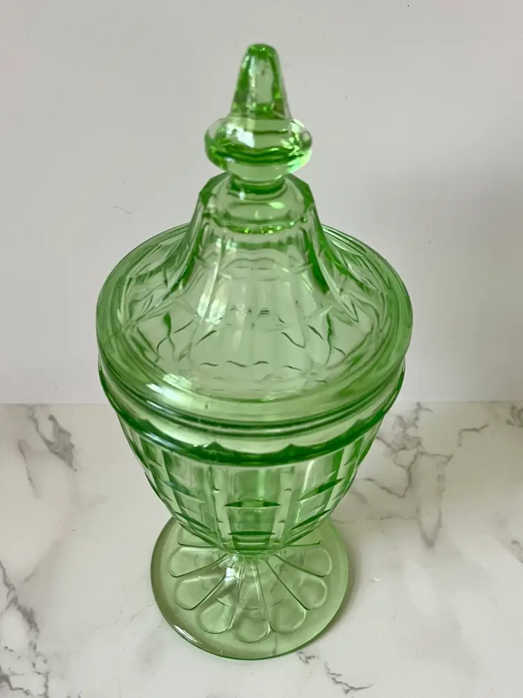 This gorgeous candy dish is in very good condition. There is a tiny flea bite on the edge of the lid otherwise no chips/cracks.
