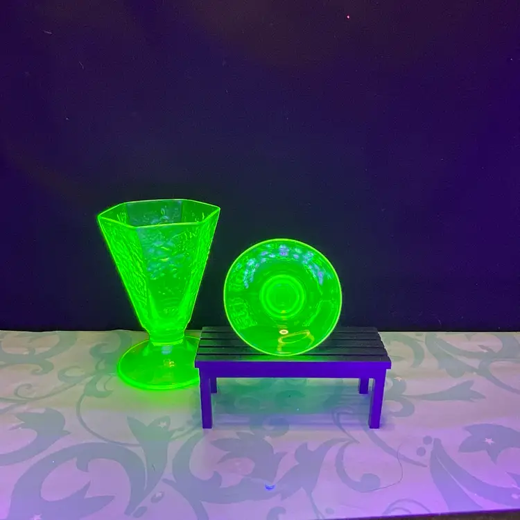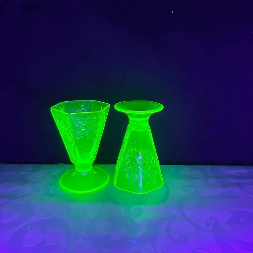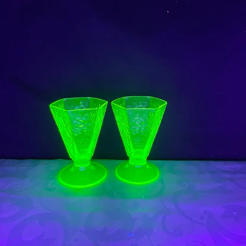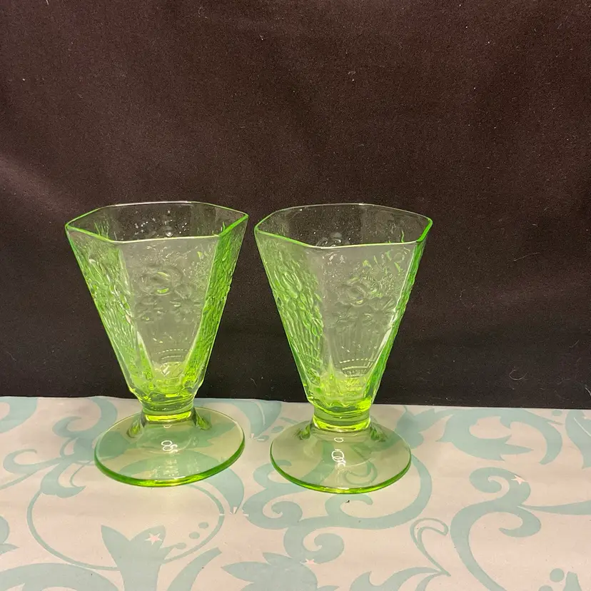 Add a touch of vintage charm to your glassware collection with this set of two small parfait glasses. Made of glass with a beautiful flower pattern in shades of green, these dessert glasses are perfect for all occasions. The glasses are part of the barware collection and are ideal for serving desserts or cocktails. The glasses are made of high-quality glass and are perfect for collectors of vintage glassware. The set includes two dessert glasses that are perfect for serving small treats. The glasses are an excellent addition to your kitchen and will impress your guests with their unique design.