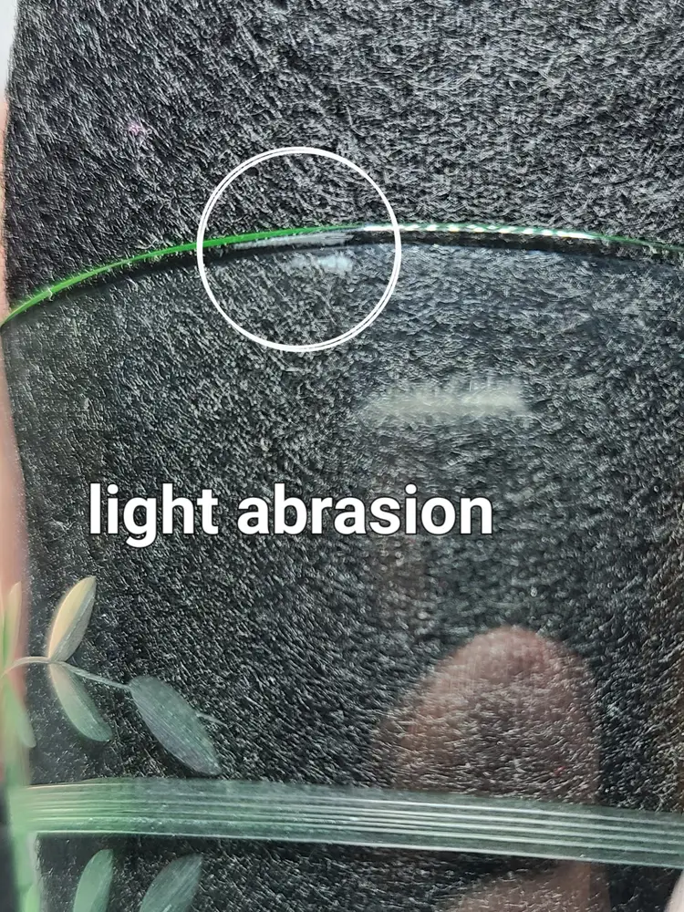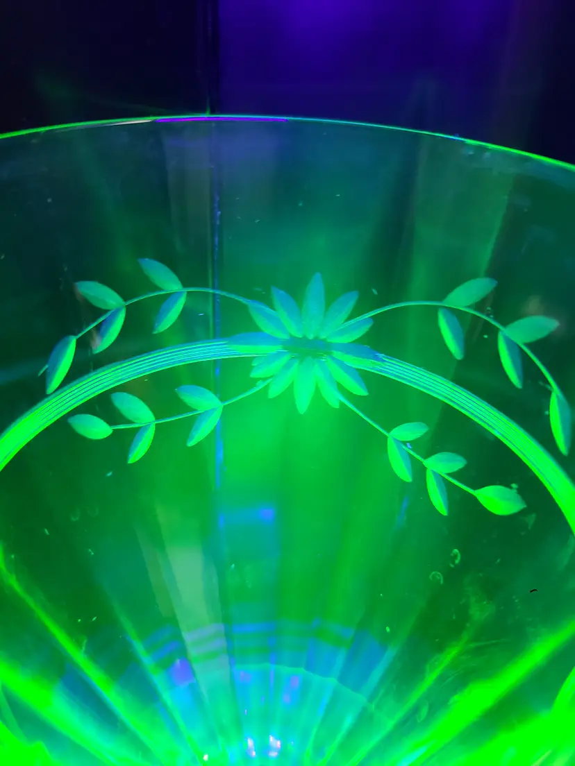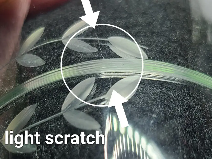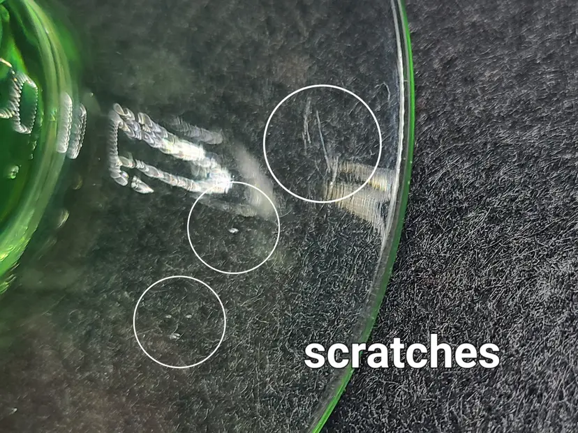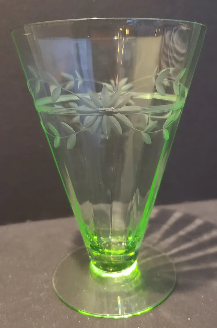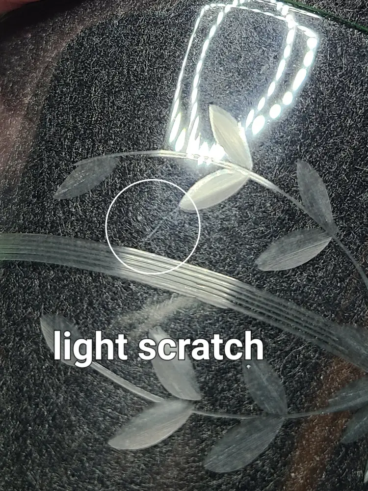Good vintage condition. There are small flaws. Please look at all pics. Overall, it's quite lovely. Wish I could confirm the maker and pattern, but it seems to be one of those mysteries. Approx 5-1/4" tall, 3-1/2" wide at top rim.