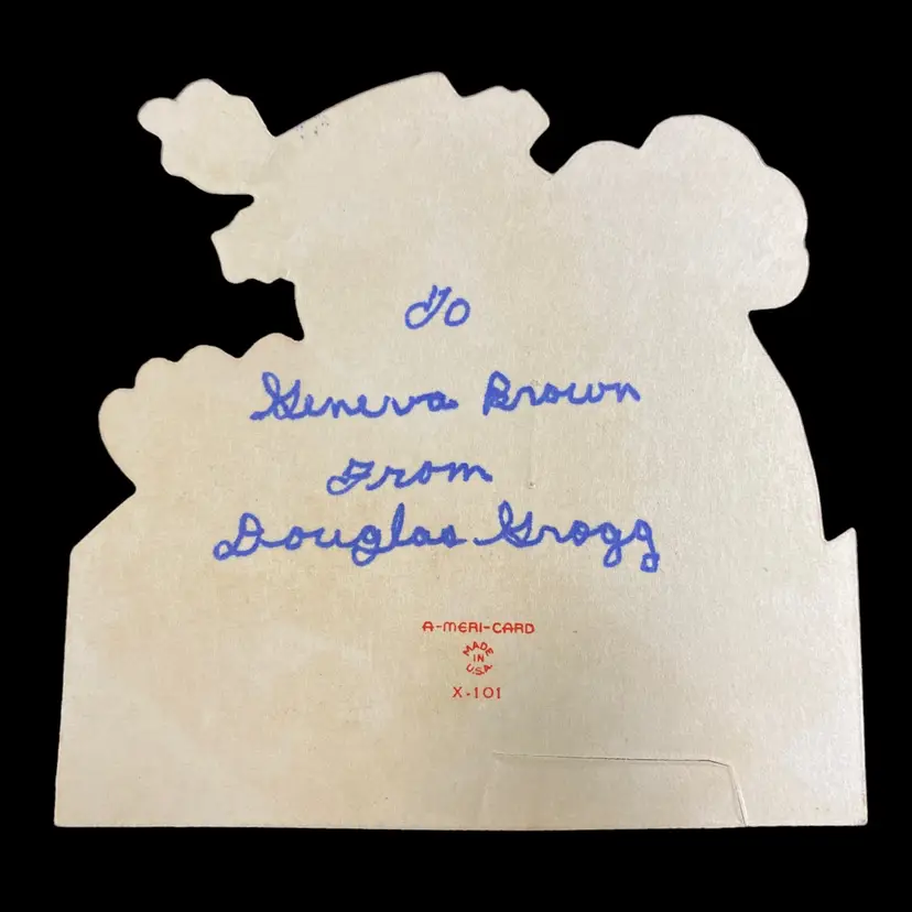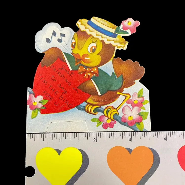 3.5” x 3.5”, writing on the back. Cut out for potential standup (not tested). Please see all photos.