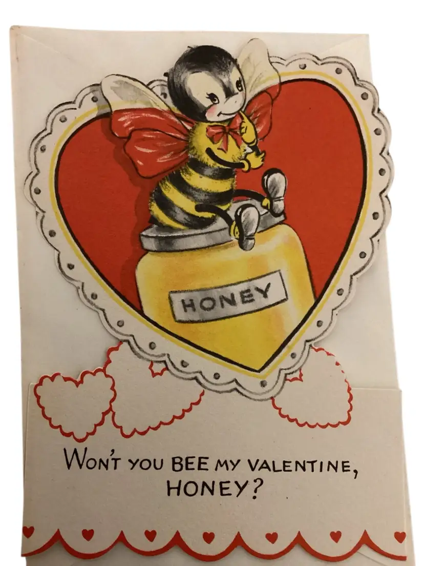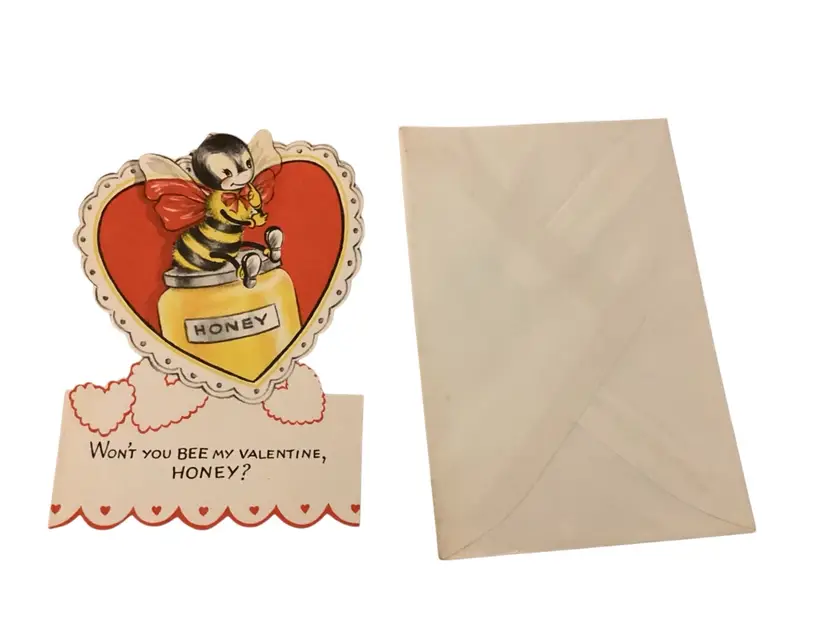 This adorable card was never used. Envelope has sealed from age. 3 1/2” wide and 5” tall. In excellent vintage condition