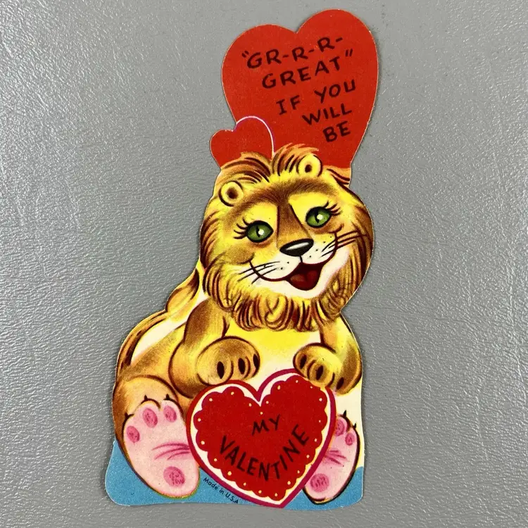 Vintage Valentine Card Die Cut Lion Gr-r-r-Great Anthropomorphic 3.75" USA