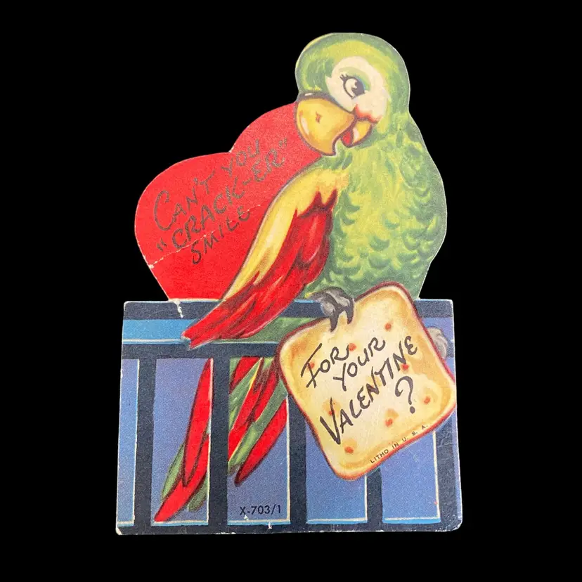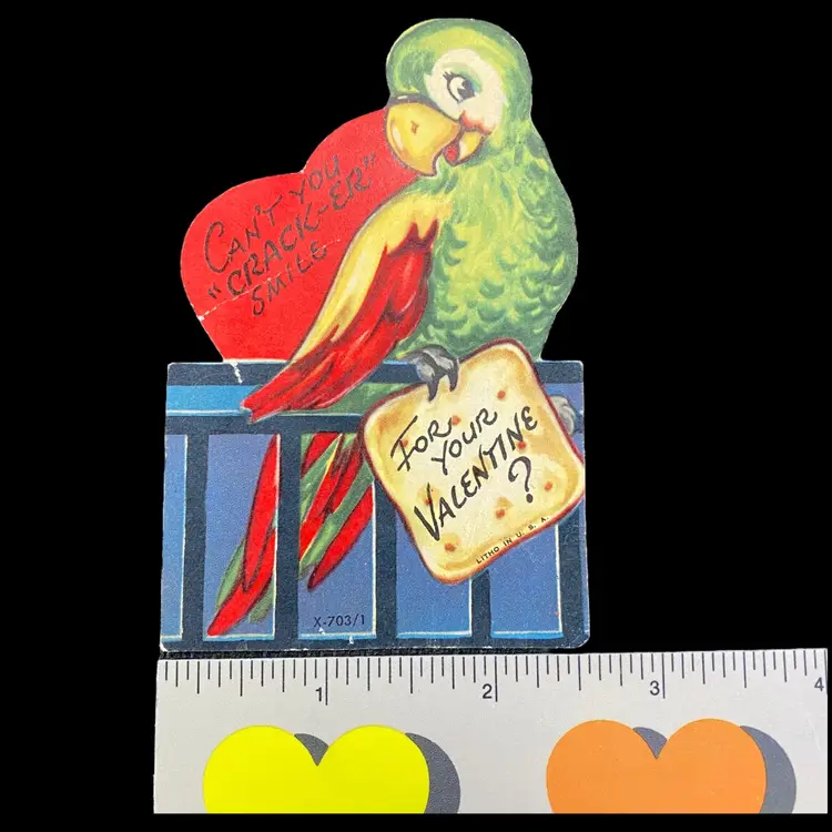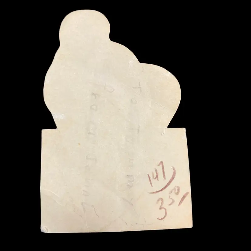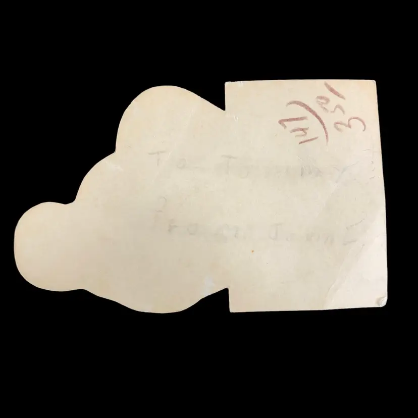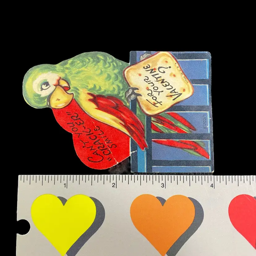 2.5” x 4”, has writing on the back some partially erased. Has crease on the heart. Please see all photos.