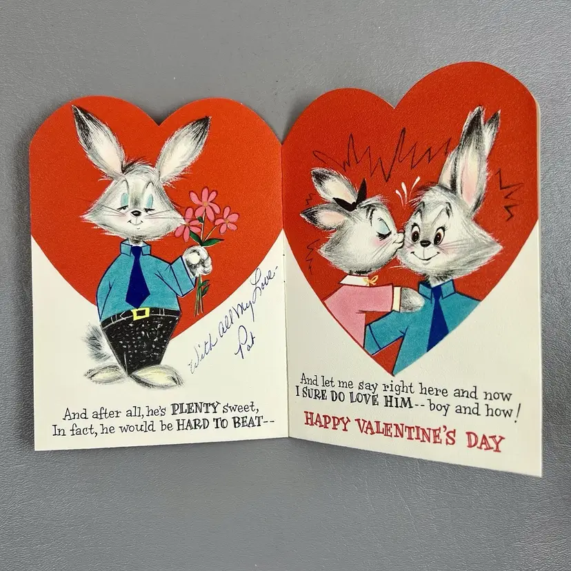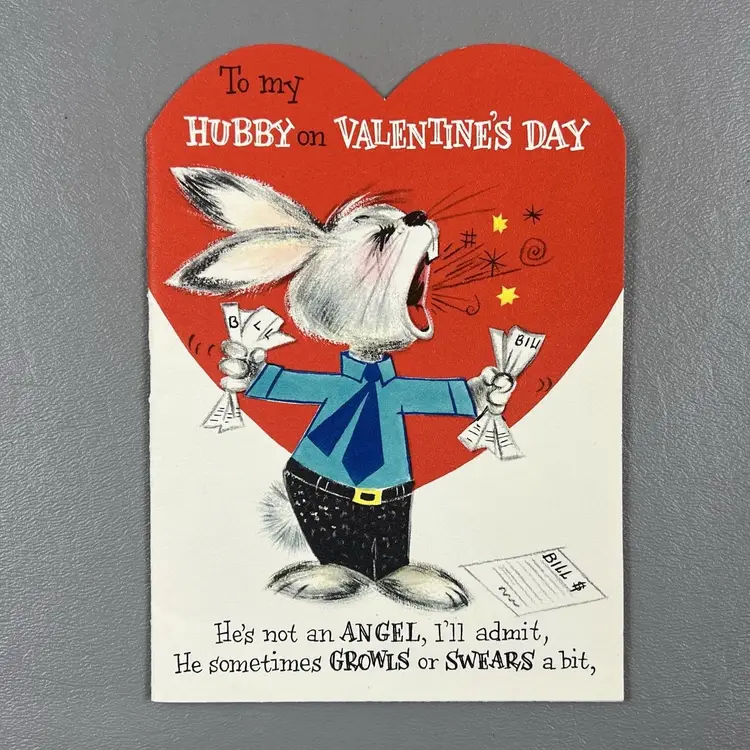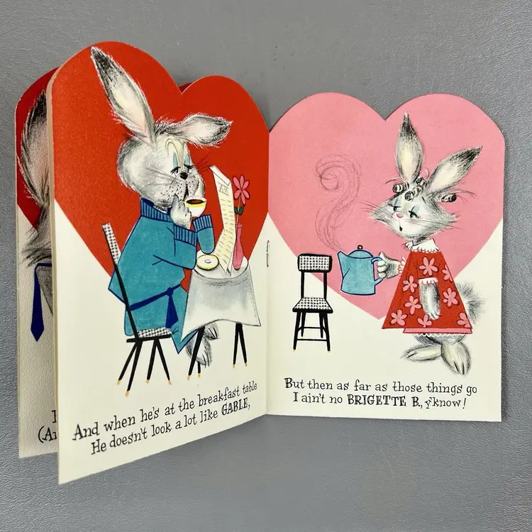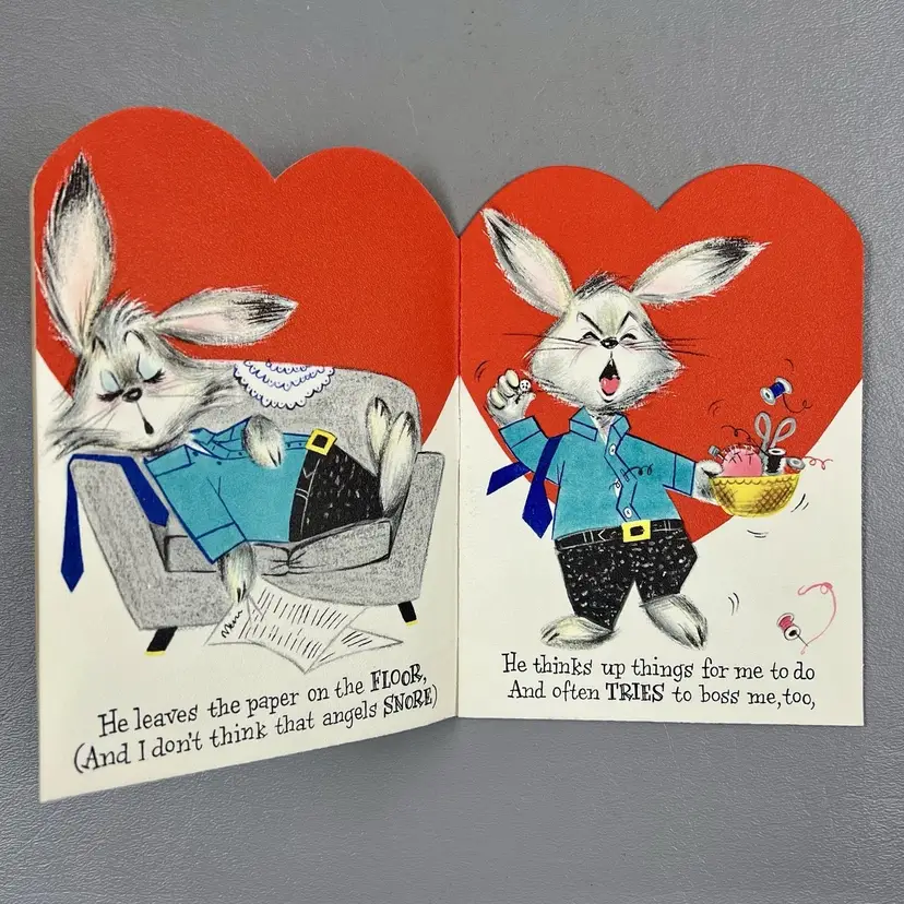 Vintage Valentine Hallmark Card Booklet Bunny Rabbit Hubby 6"