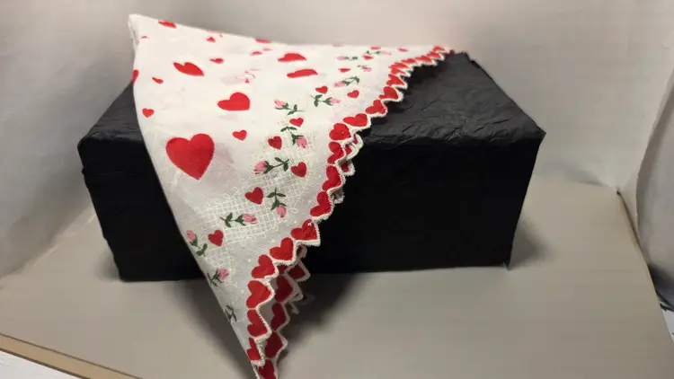Has one small stain in middle of hankie. See pic. I think it would wash out. D1