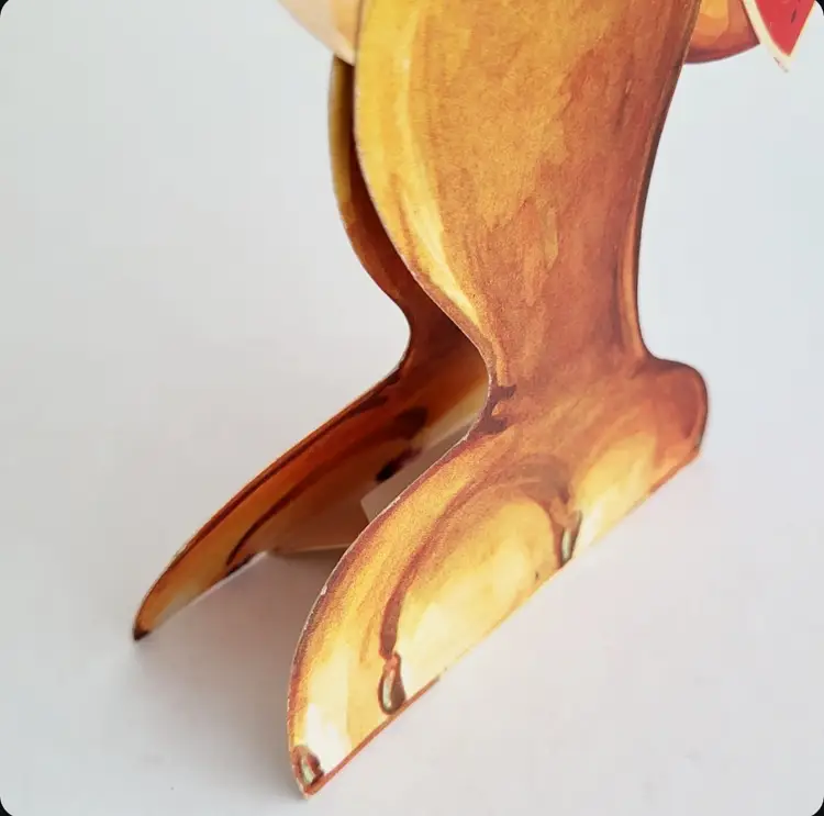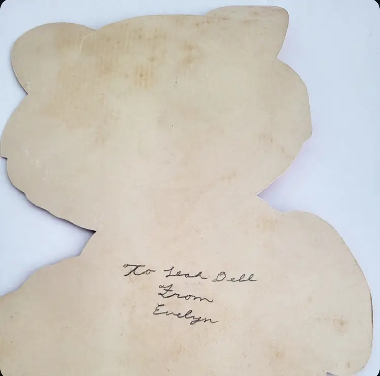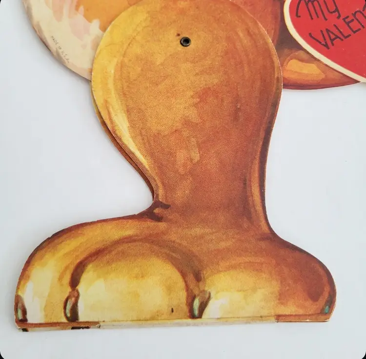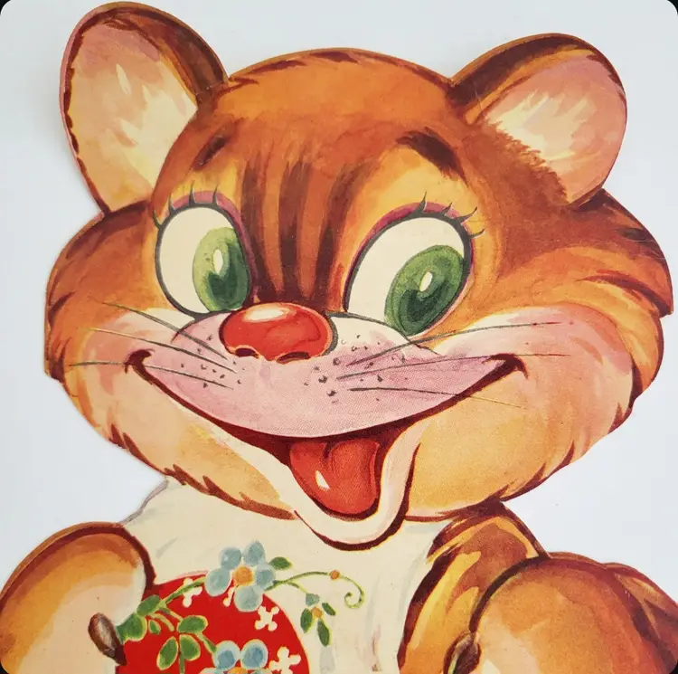 Vintage Oversized Mechanical Cat Valentine card. Used/ signed on back. Bottom of feet have a fold out easel and joined mechanical leg. Slight bend on left ear (see details). Measures 12.5 in outstretched or 10.5 in sitting x 7.25 in.