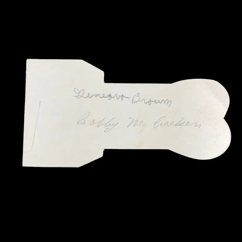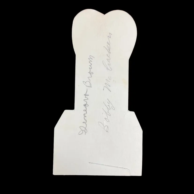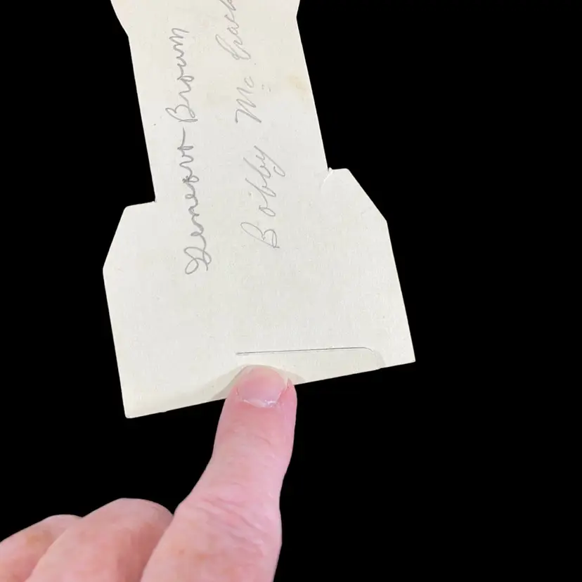 3” x 5.5”, writing on back, cut near the bottom for potential standup (not tested). Please see all photos.