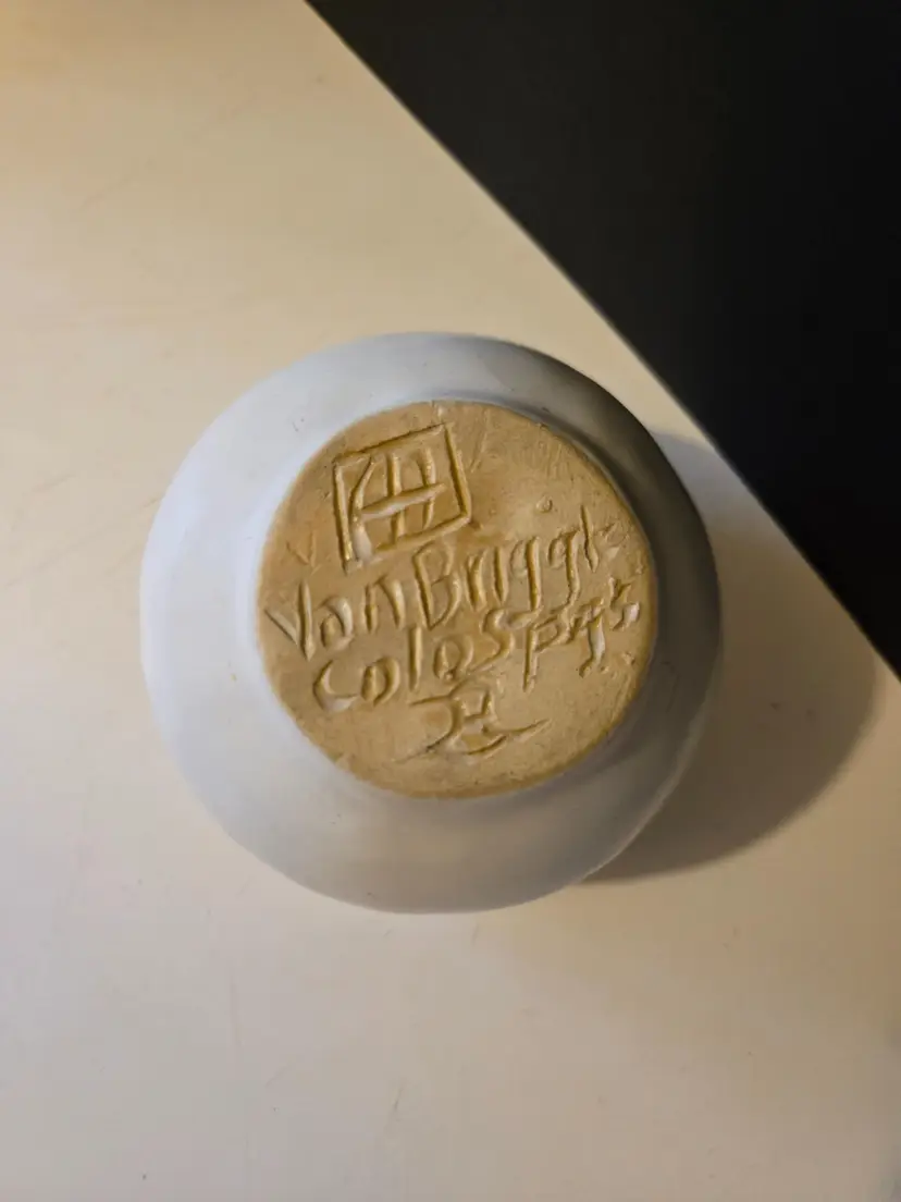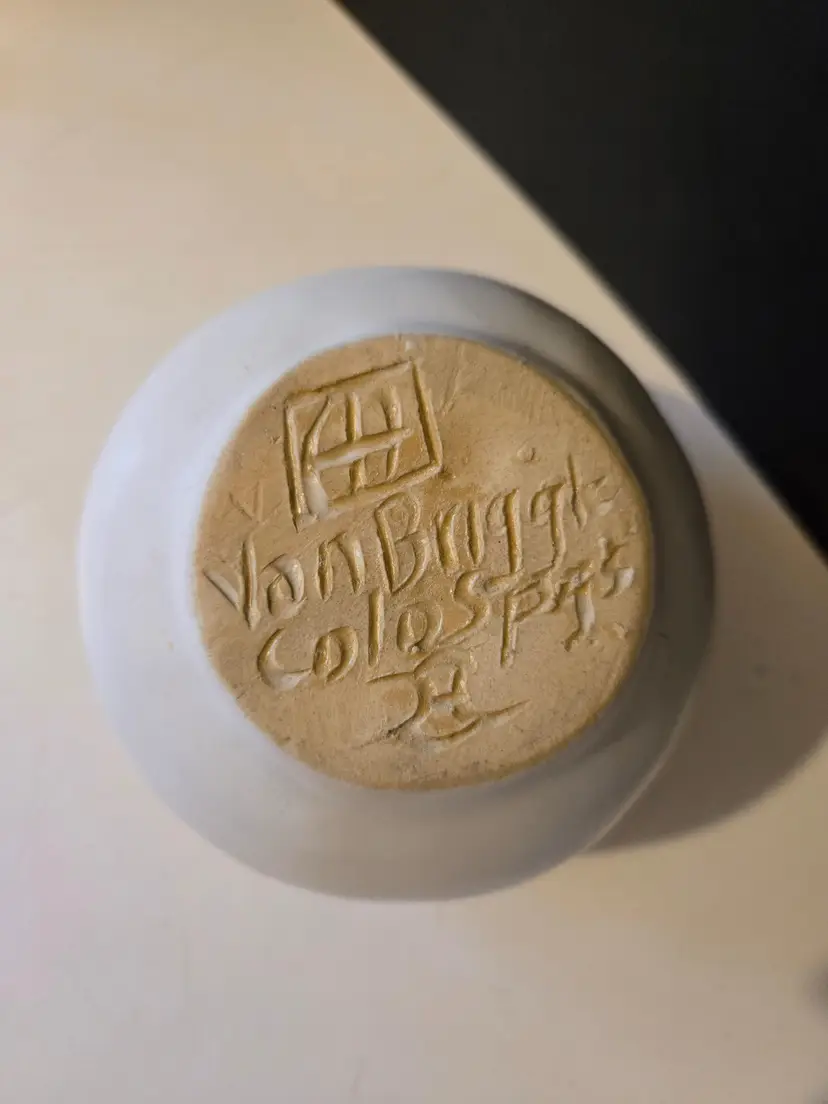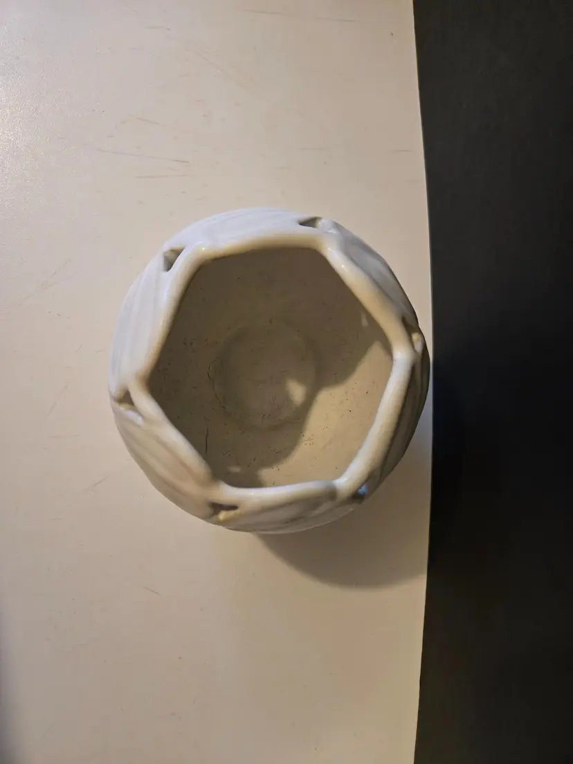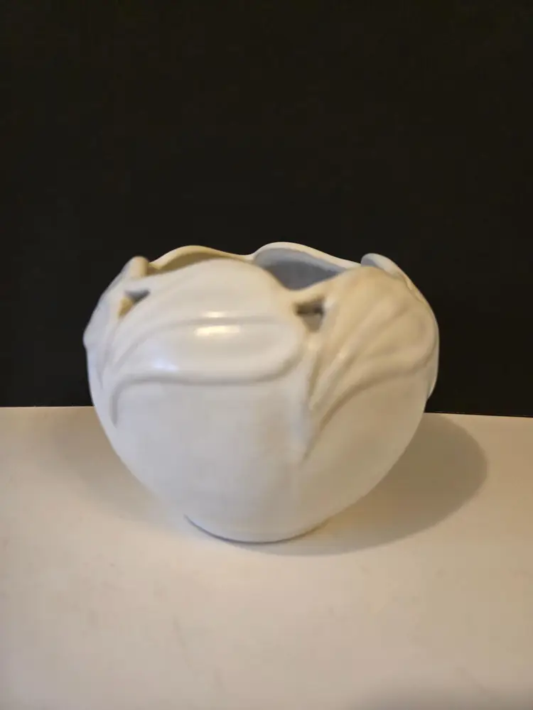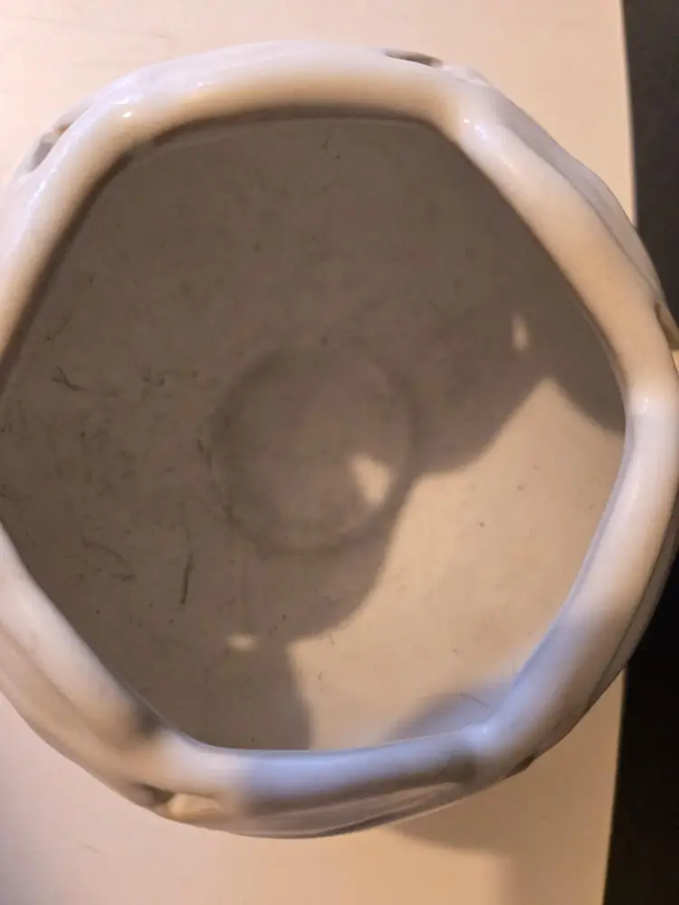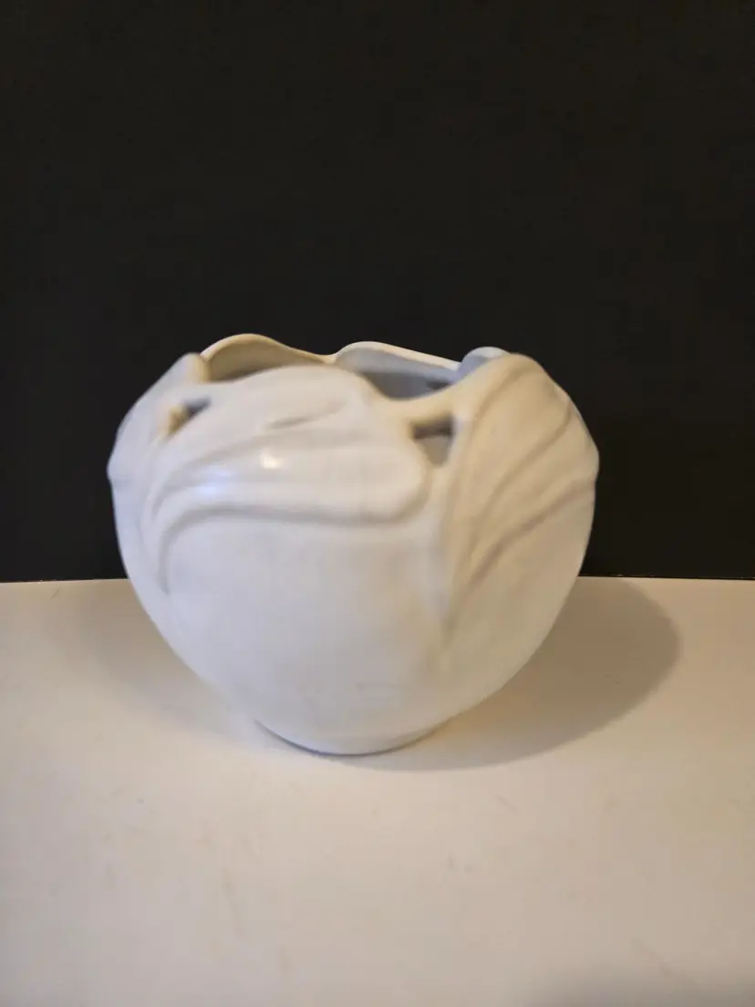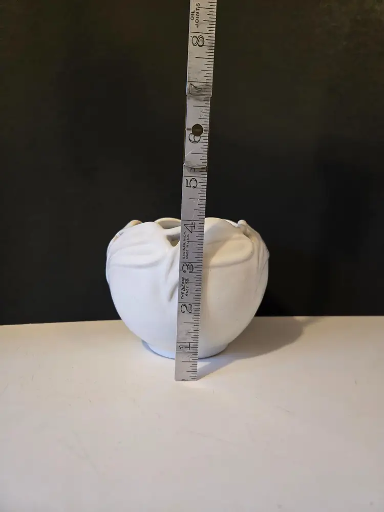 This beautiful vintage piece comes in a matte cream/off white glaze. It is approximately 4 inches tall. There are no chips or cracks but there are what might be ink marks on the piece, it looks like someone possibly used it as a pen holder π€¦ββοΈ. Please see all photos.