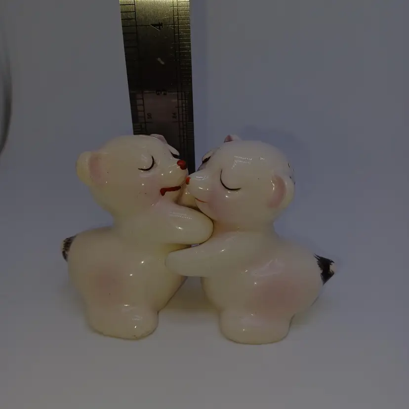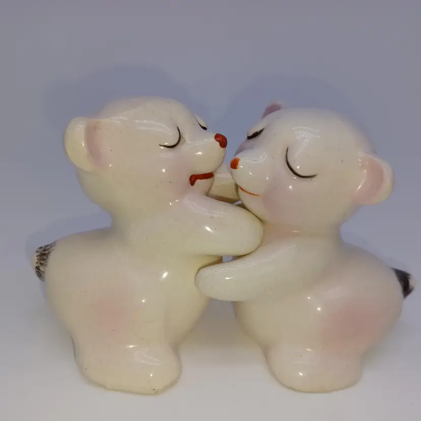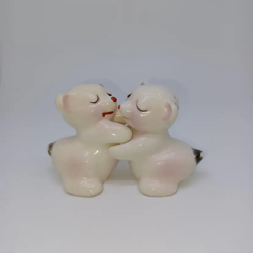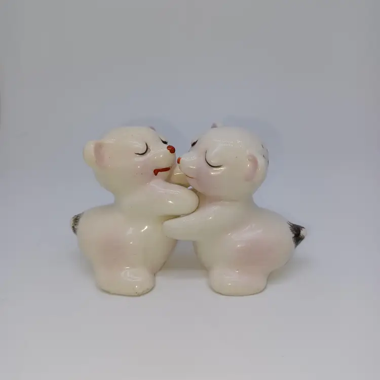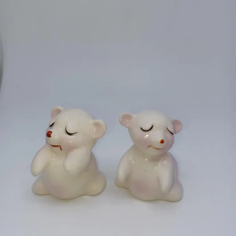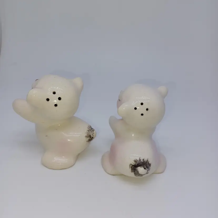 Vintage Vantelligen Hugging Bear Blush Pink salt & Pepper Shakers Occupied Japan Measures approximately 2 in tall In good vintage condition does have crazing which is normal for this white glaze from this time period Marked Occupied Japan on the bottom -the corks are inside please see all pictures as they are the best description all items from a smoke-free home with pets experienced fragile shipper