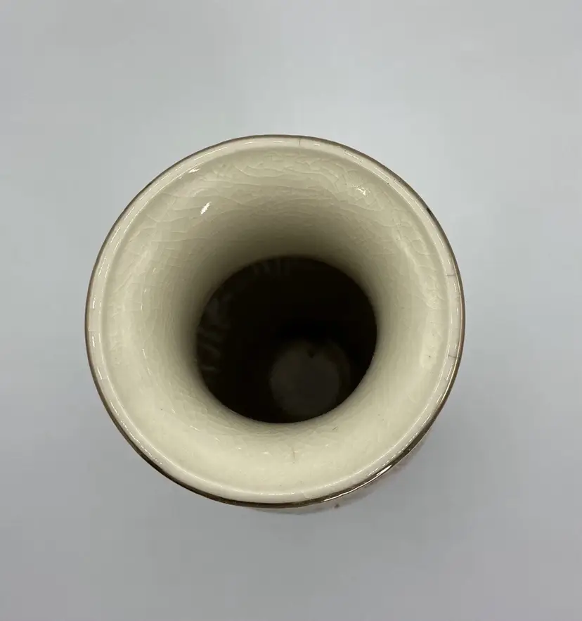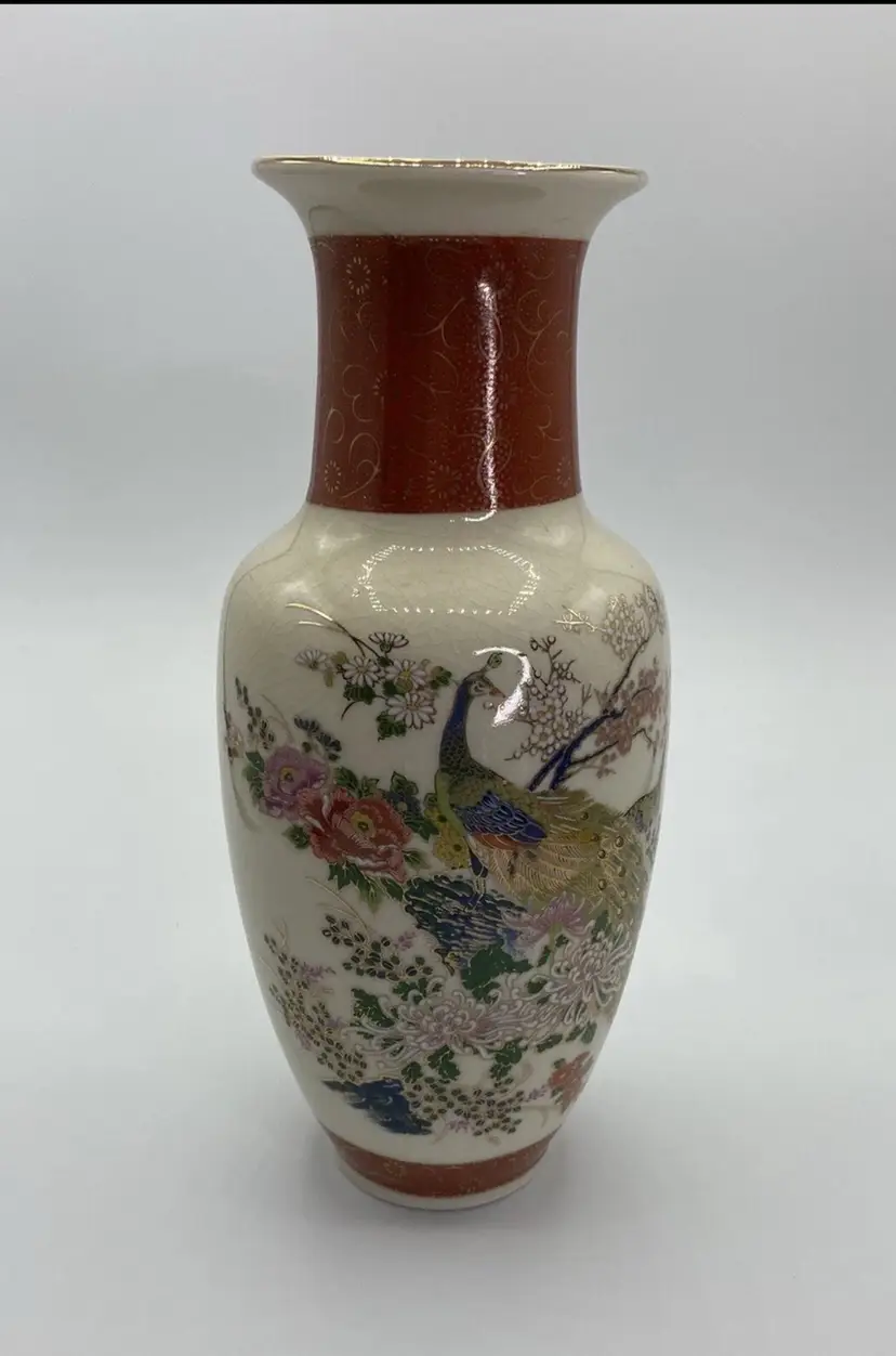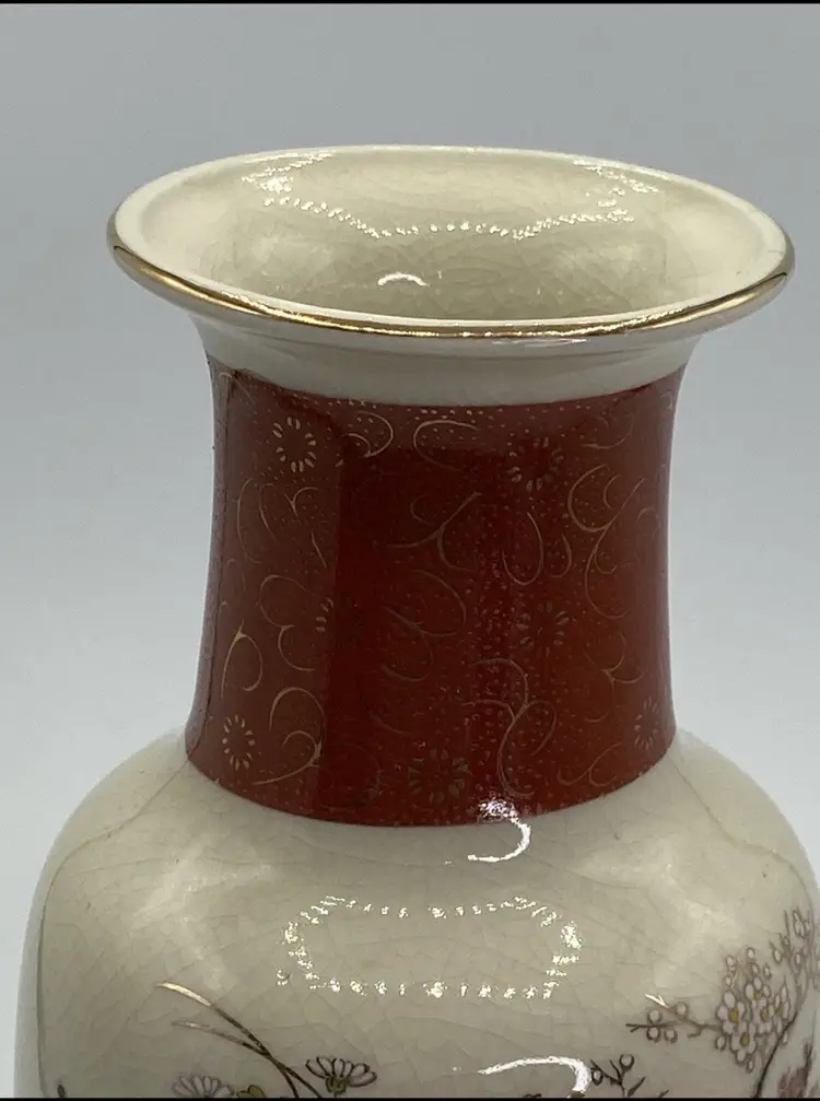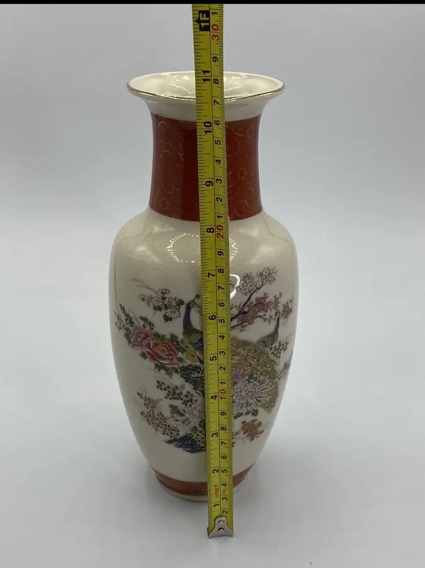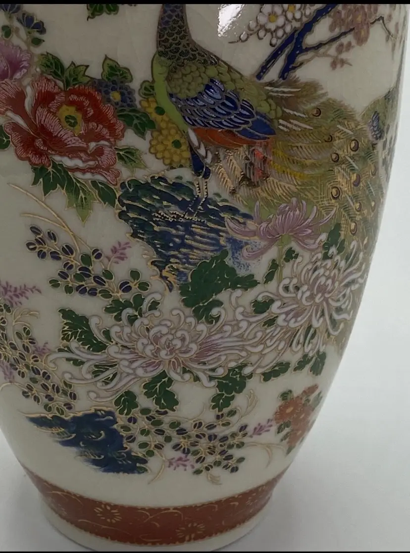 Vintage Satsuma Japan Peacock Floral Ivory Color Vase Porcelain Gold Trim. Condition is "Used". No chips or cracks. Crazing consistent with age.