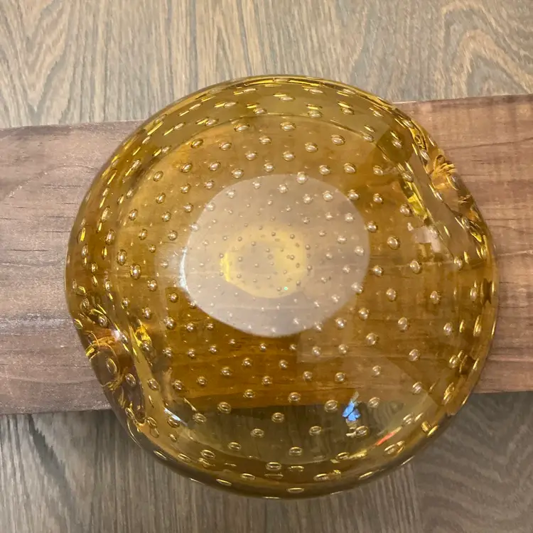 Beautiful amber colored Italian art glass ashtray/ bowl. Gorgeous bullicante work in the glass. No Murano sticker, but definitely could be. I can not completely verify so it could be a fantastic find.