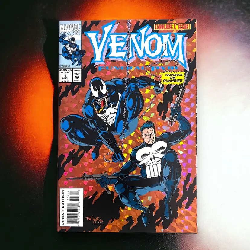 Here We Have a Vintage VENOM: Funeral Pyre #1 8/93 Direct Edition Holo-Grafx Cover Punisher