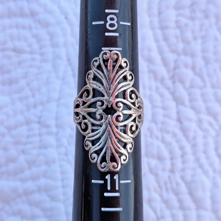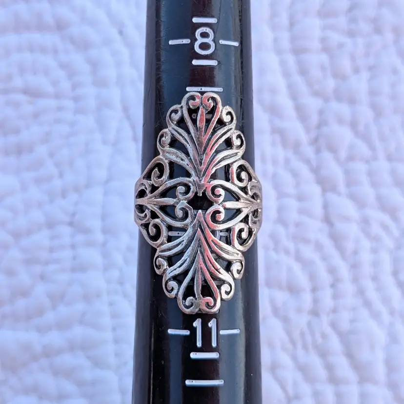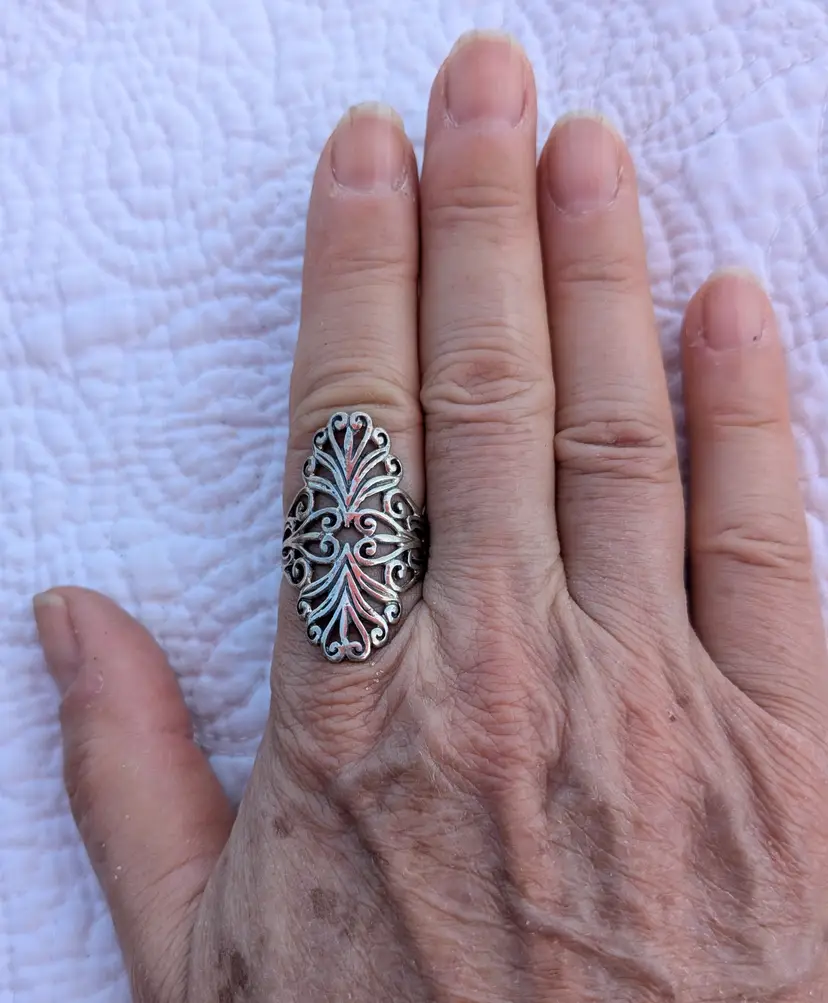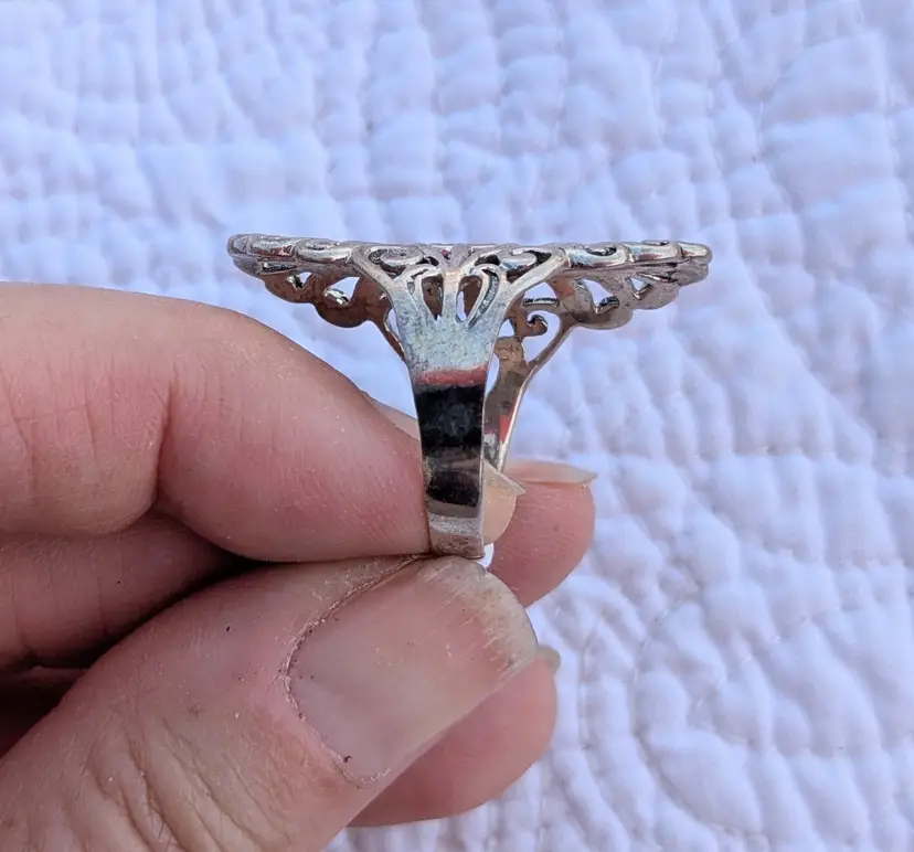 The front face of this ring is almost 1-1/2" long. Marked 925