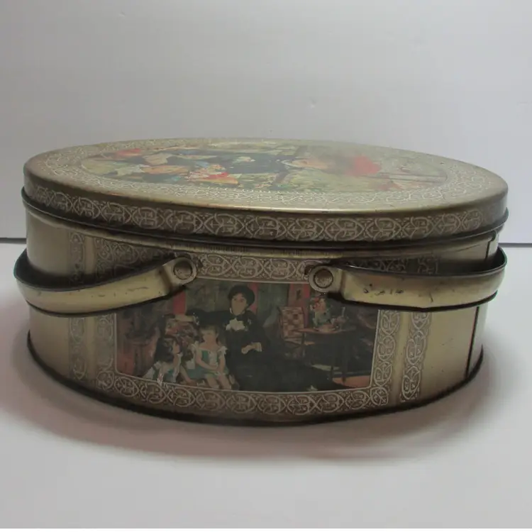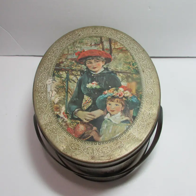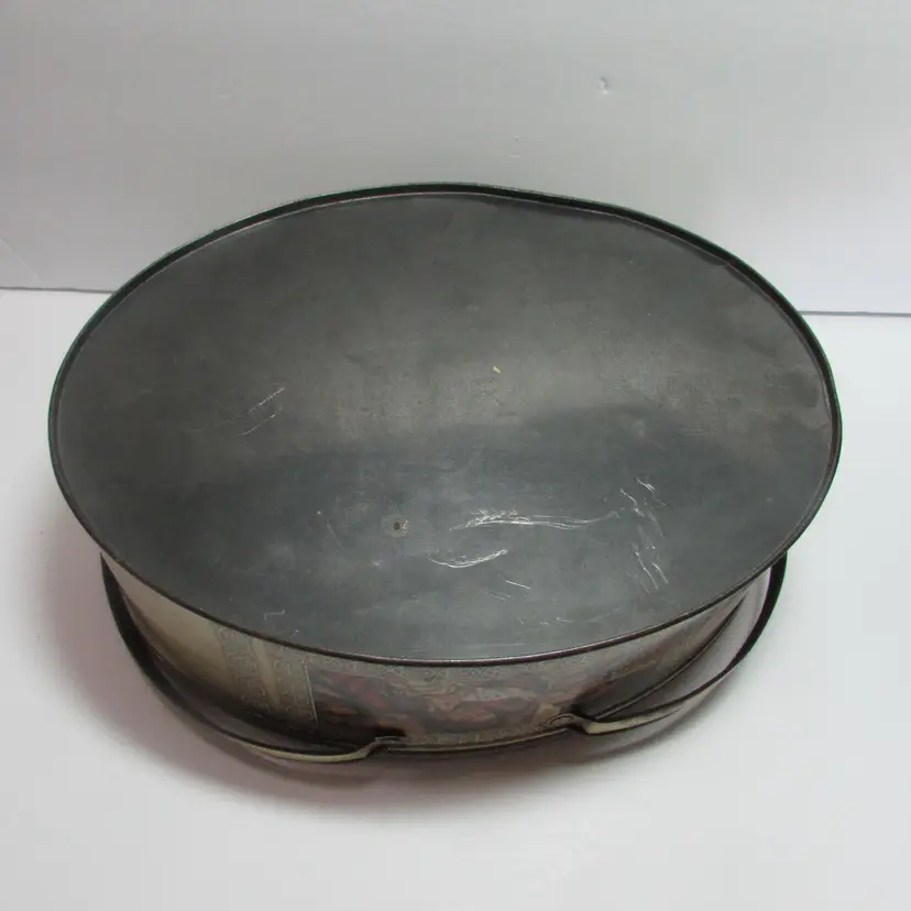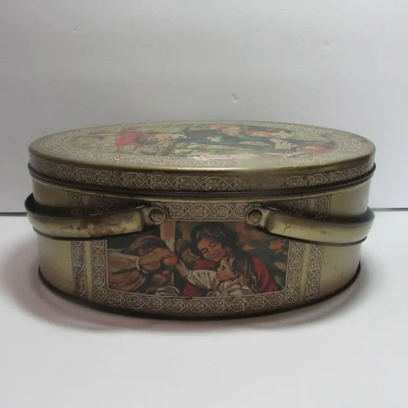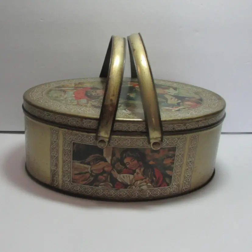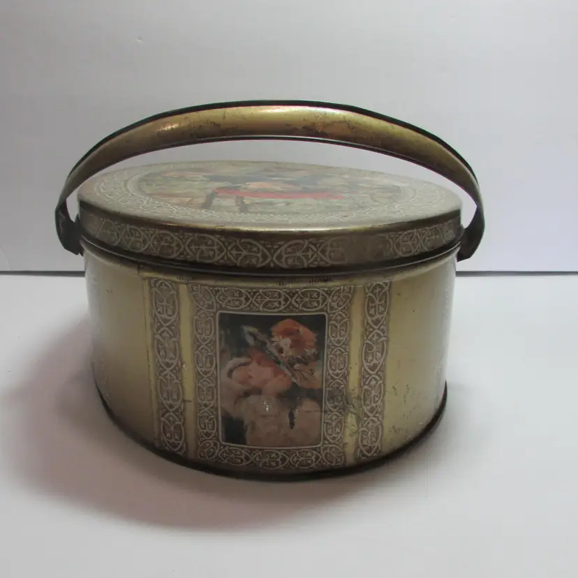 This sewing tin is filled with different vintage sewing supplies. The tin and supplies have some wear, but still a nice piece to display. The tin is about 2 3/4" x 7" round. This is shipped from a smoke free home. Thanks for looking! locurr