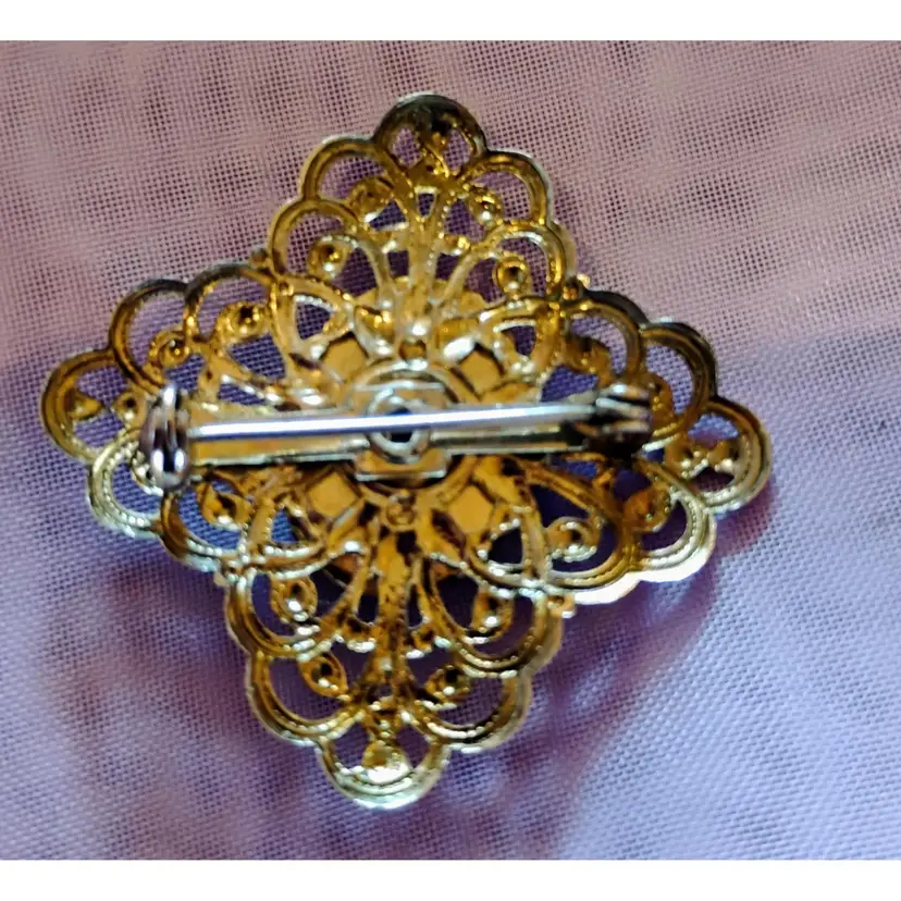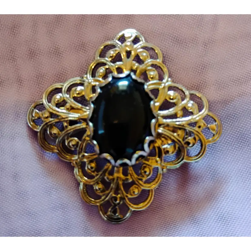 Lovely, silver toned, Vintage, ornate cross pattern, with black Stone.