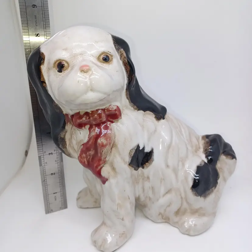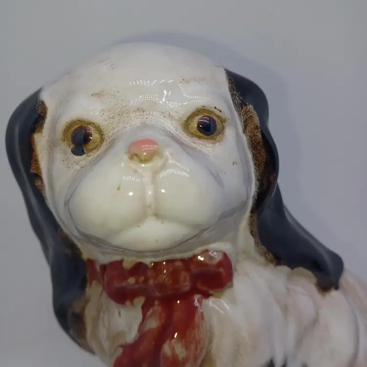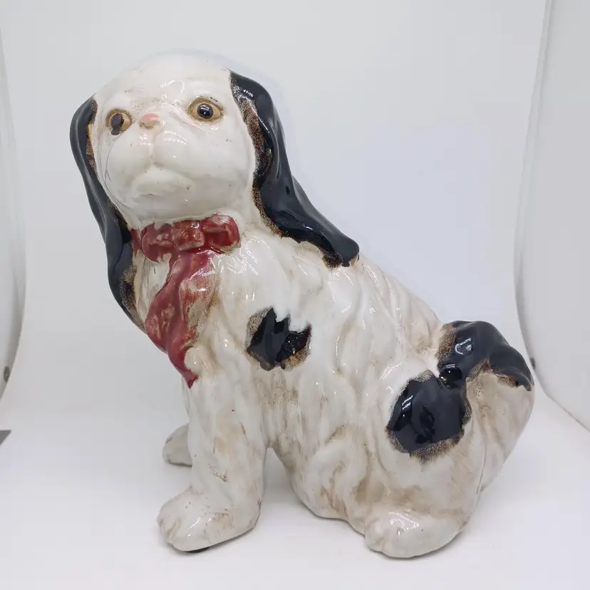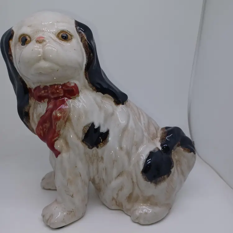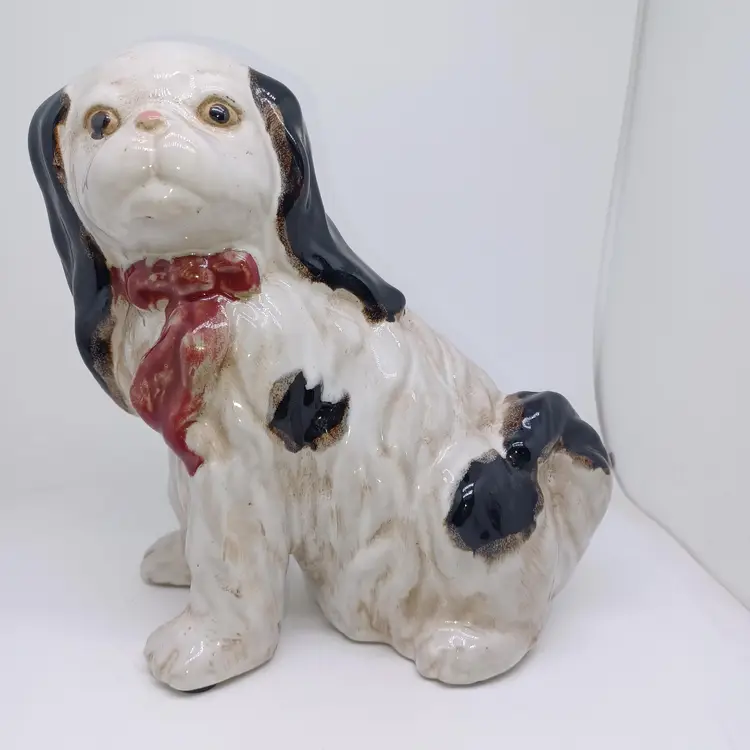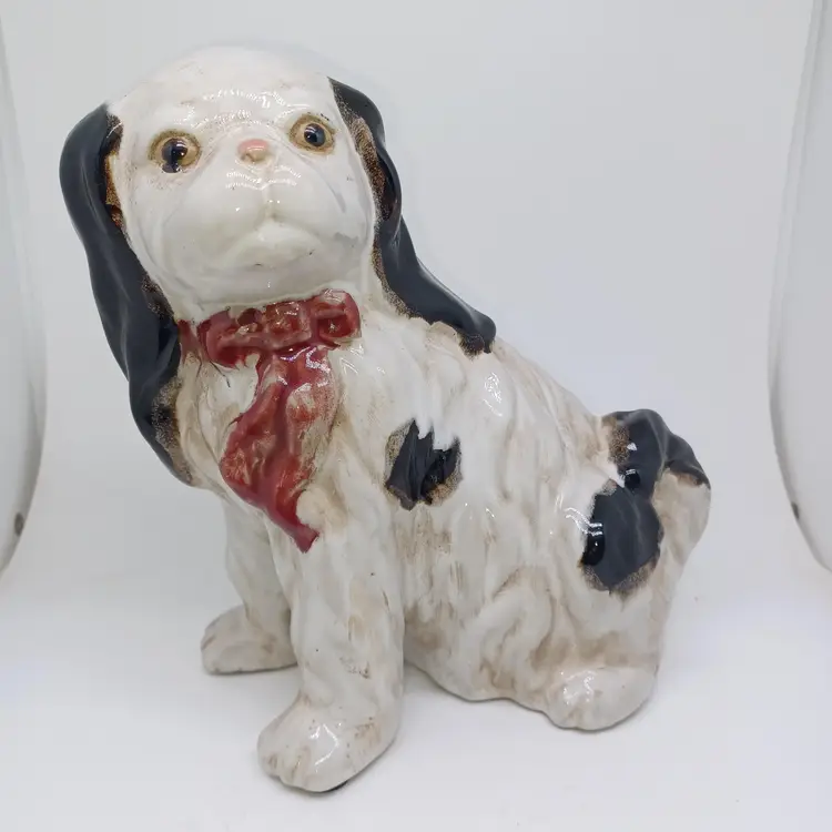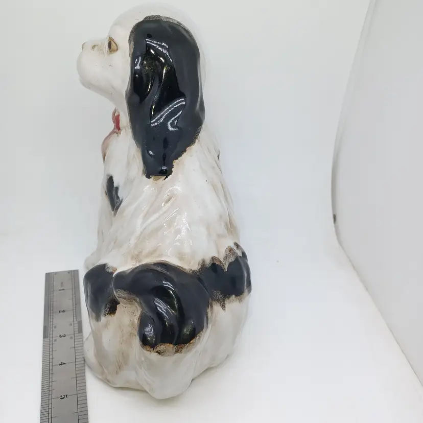 Victorian Staffordshire King Charles Spaniel 9” Porcelain Majolica dog statue Staffordshire Style Black and White Spaniel In great vintage condition, please see all pictures as they are The best description was part of a 92 yr old woman's estate where she had a vast collection and took very good care of her items. All items from a smoke-Free home with pets experience fragile shipper This is a very heavy item weighs almost 3 pounds
