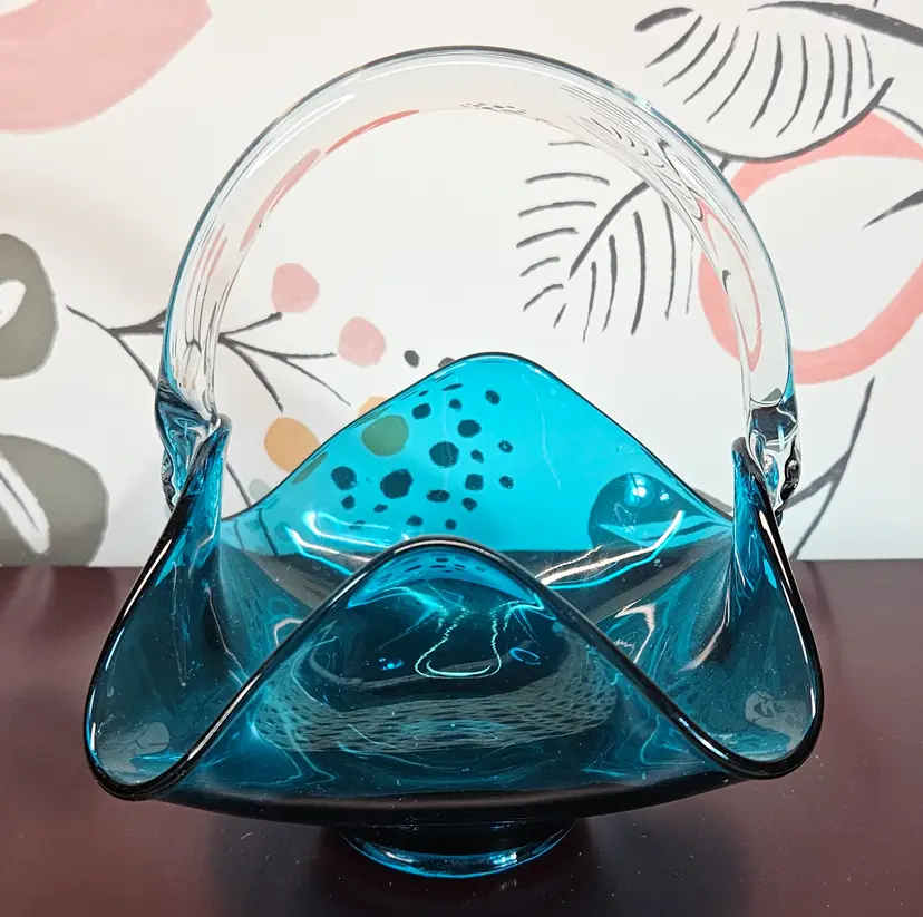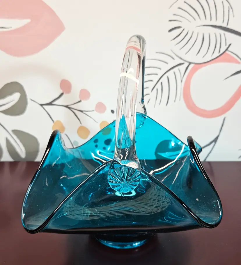 This beautiful Viking glass basket is in excellent, used condition, with no appreciable chips, scratches or cracks. Measurements are depicted in the pictures of the item or listed in the description of the item. Please review the photos, as they are part of the item description.