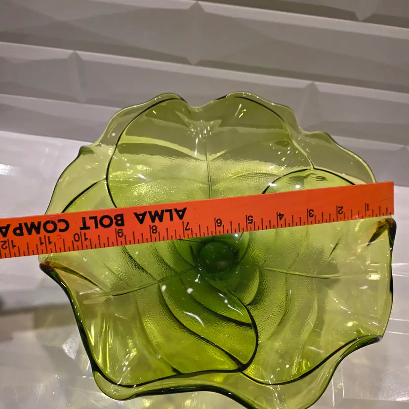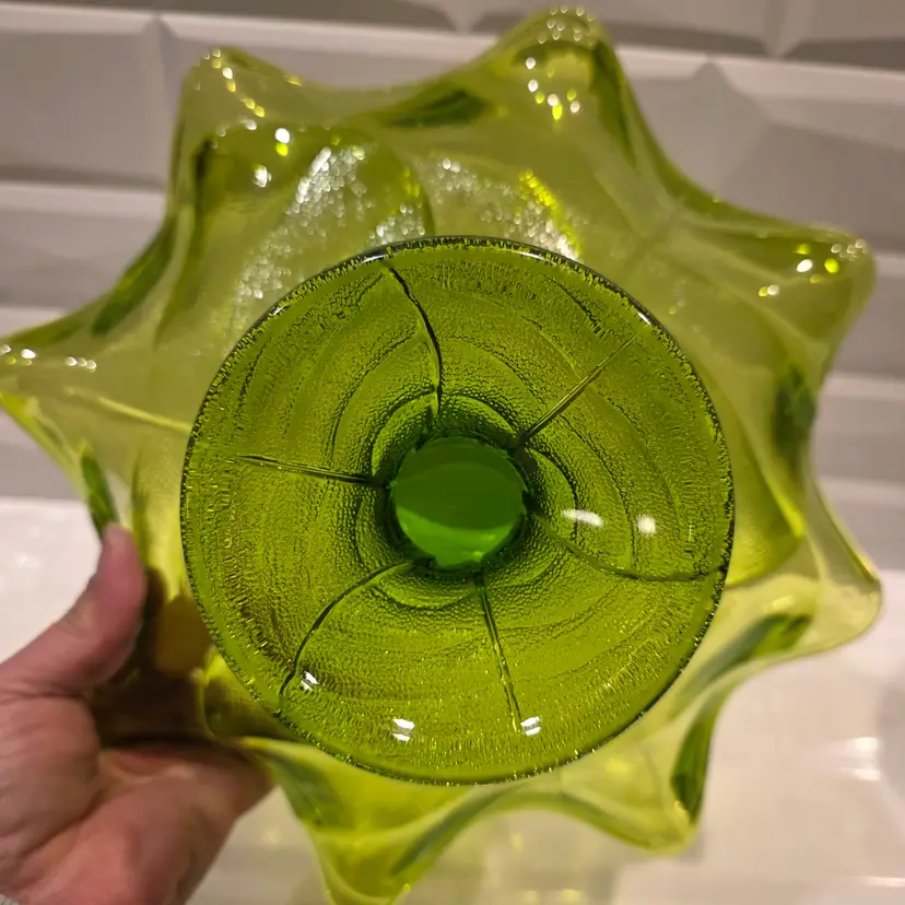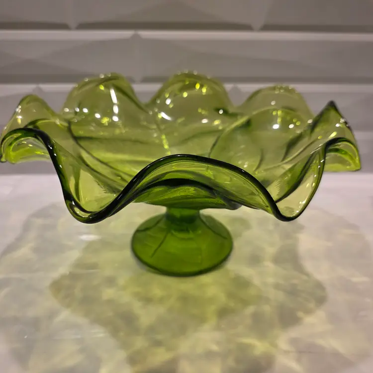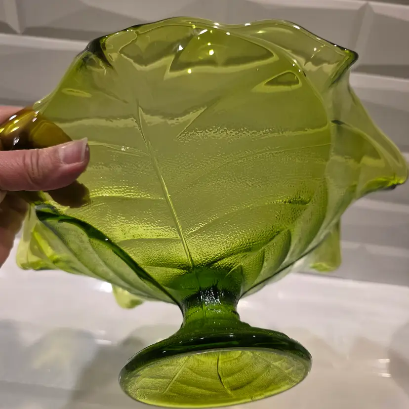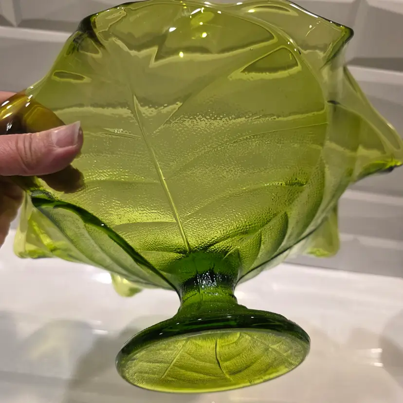 Vintage Viking Leaf Print Green Footed Bowl 6" T x 11" Good condition no chips or cracks Please review photos