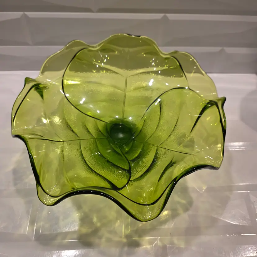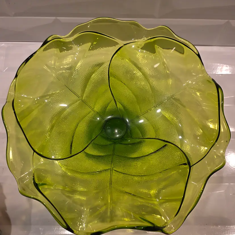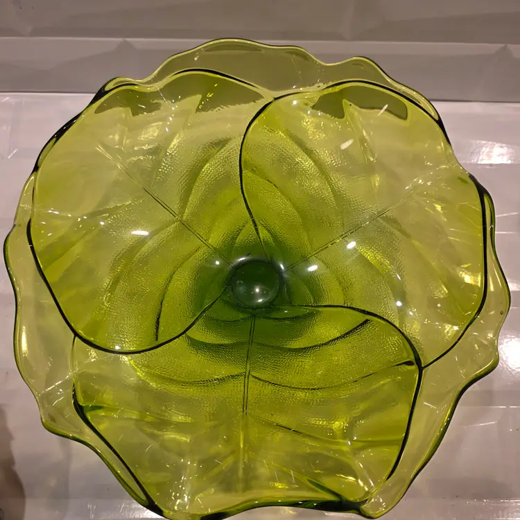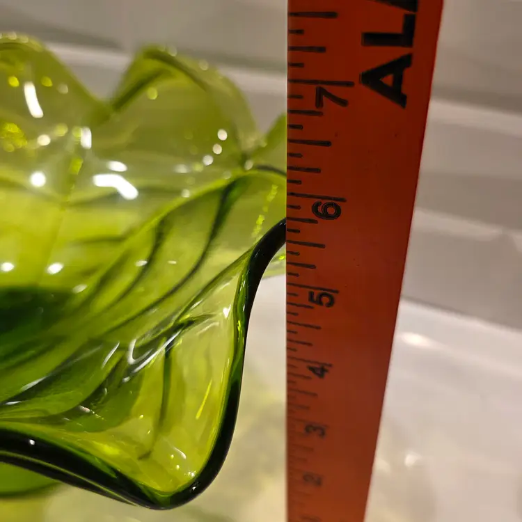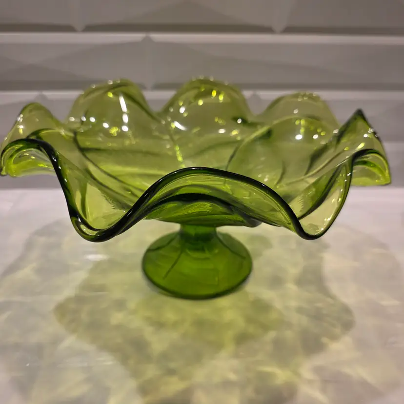 Vintage Viking Leaf Print Green Footed Bowl 6" T x 11" Good condition no chips or cracks Please review photos