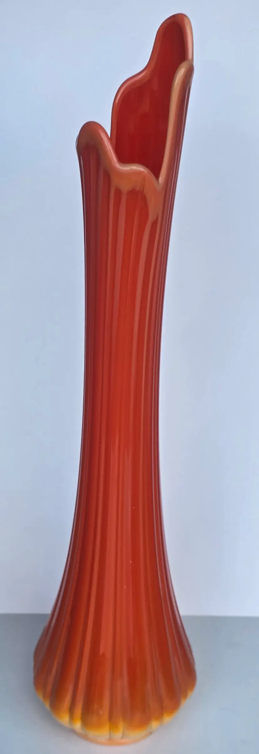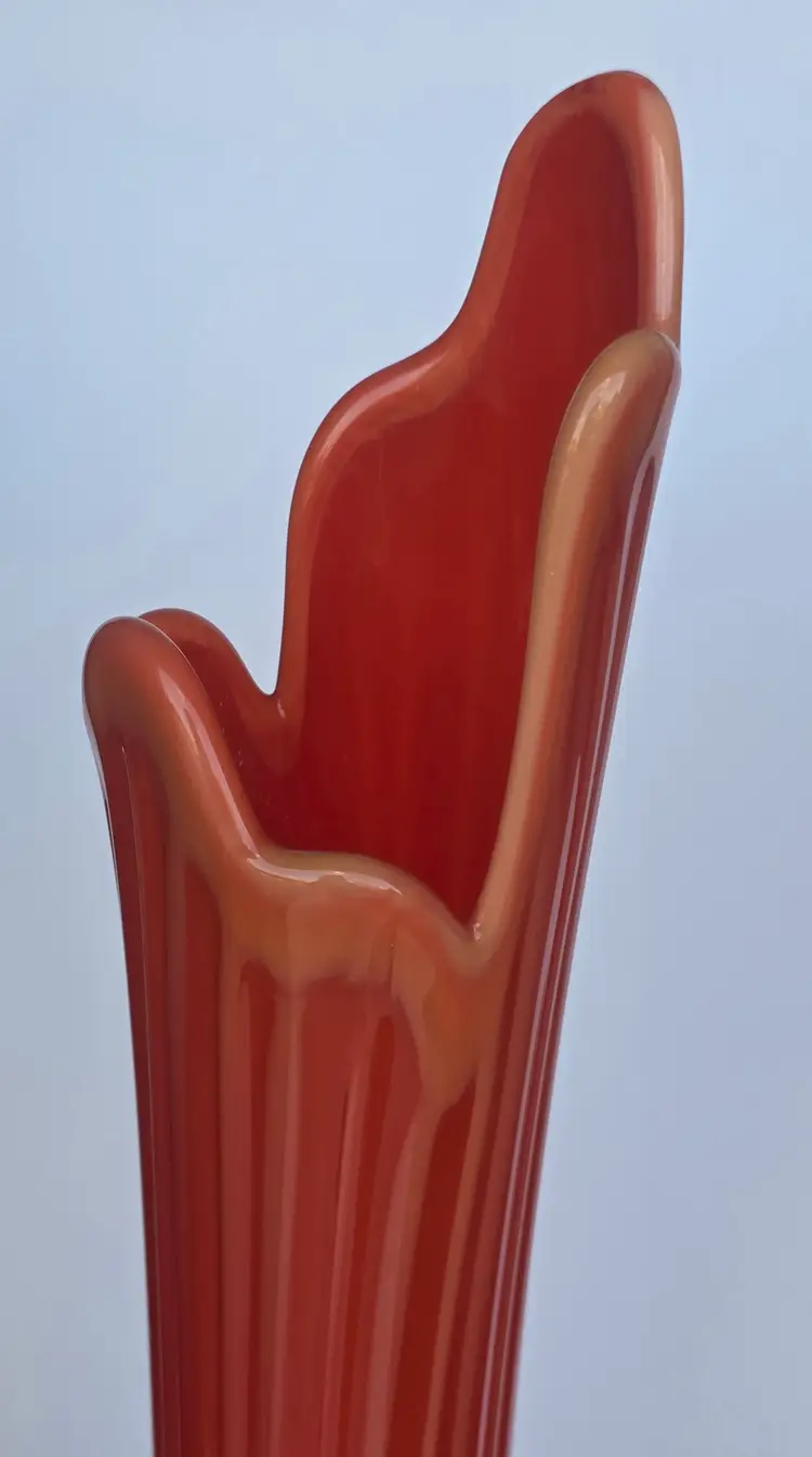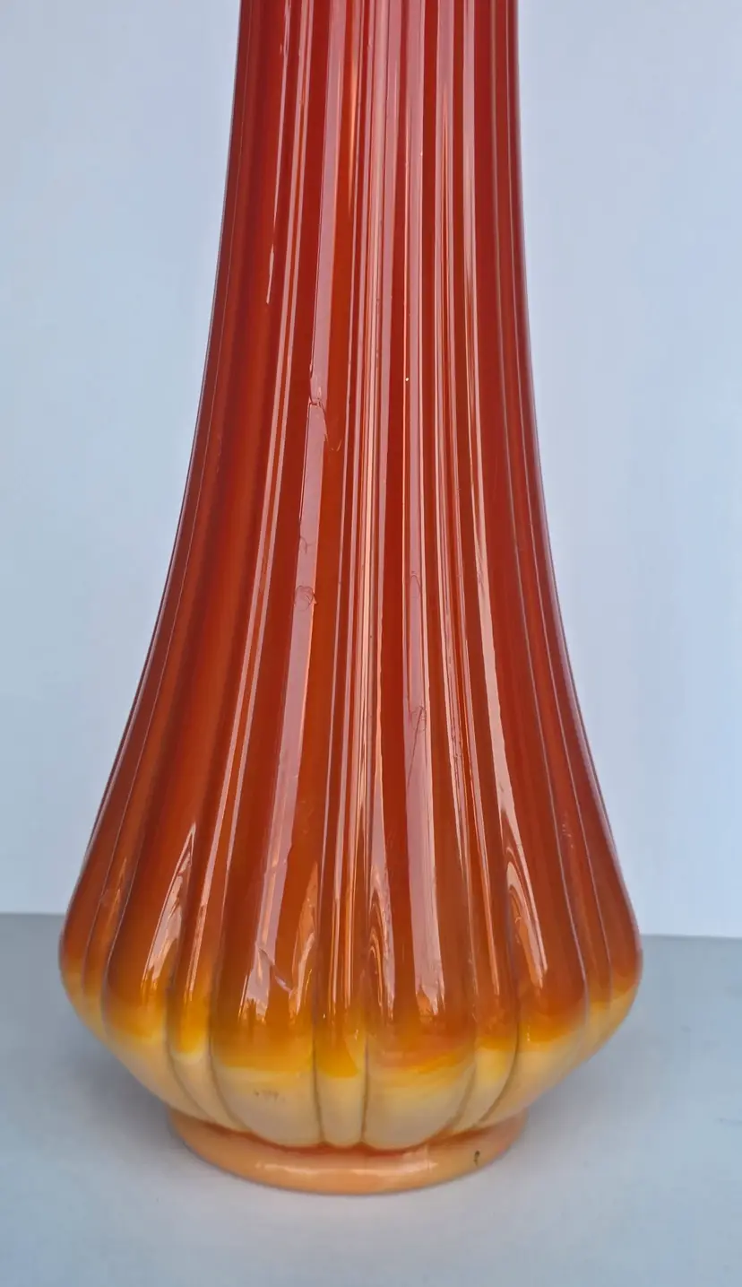 Striking orange L.E Smith bittersweet swung glass vase, standing 25.5" tall. Perfect for adding a pop of color to any room.