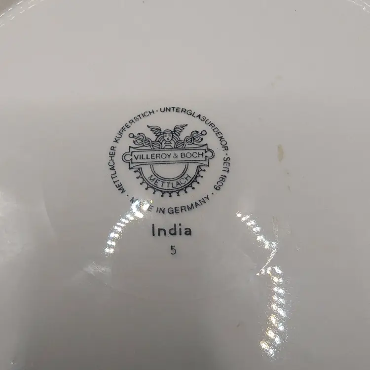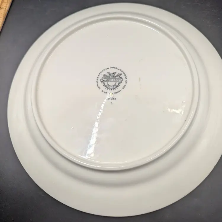 This is a lovely Vintage Villeroy & Boch India Mottahedeh Design Bird Plate. It measures 9 inches in diameter. No chips or cracks. There is a rough spot on the edge which looks like a manufacturer flaw as seen in last picture. Please see all pictures for condition and measurements.