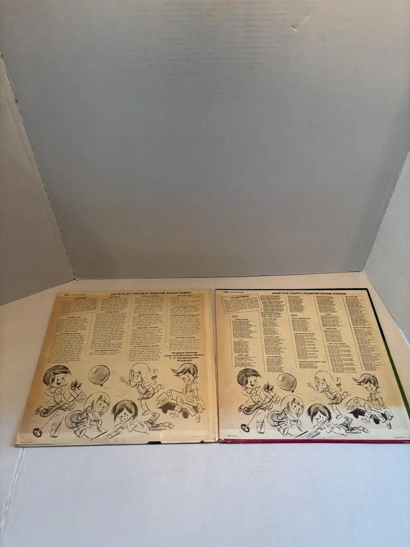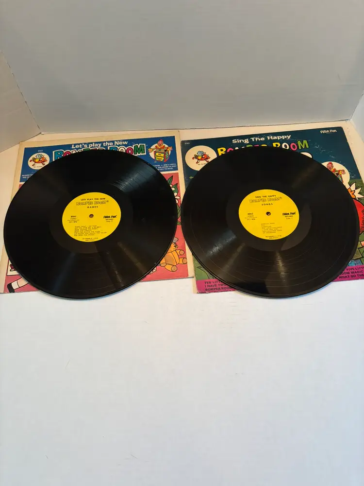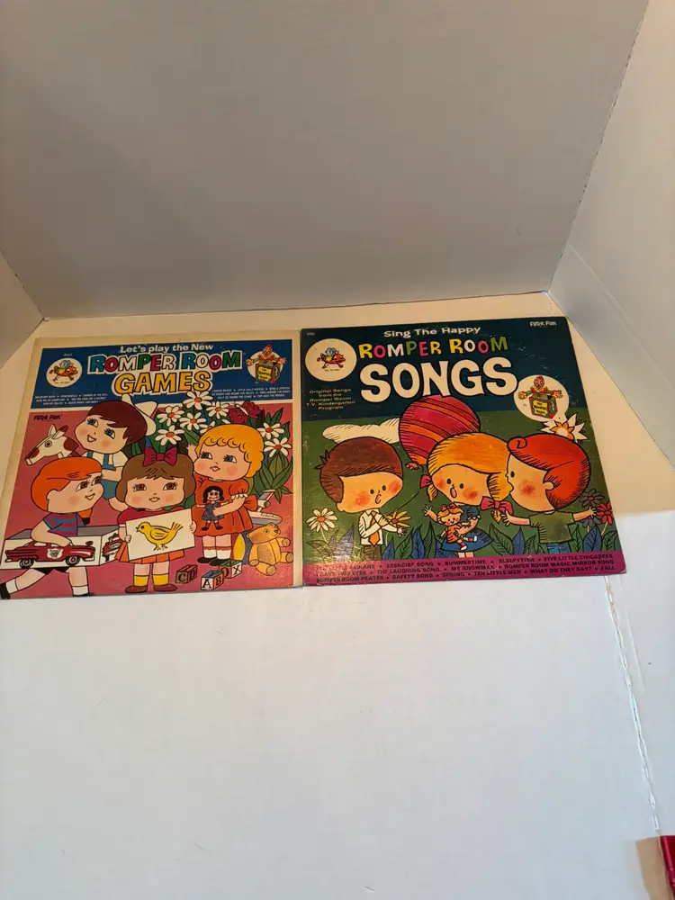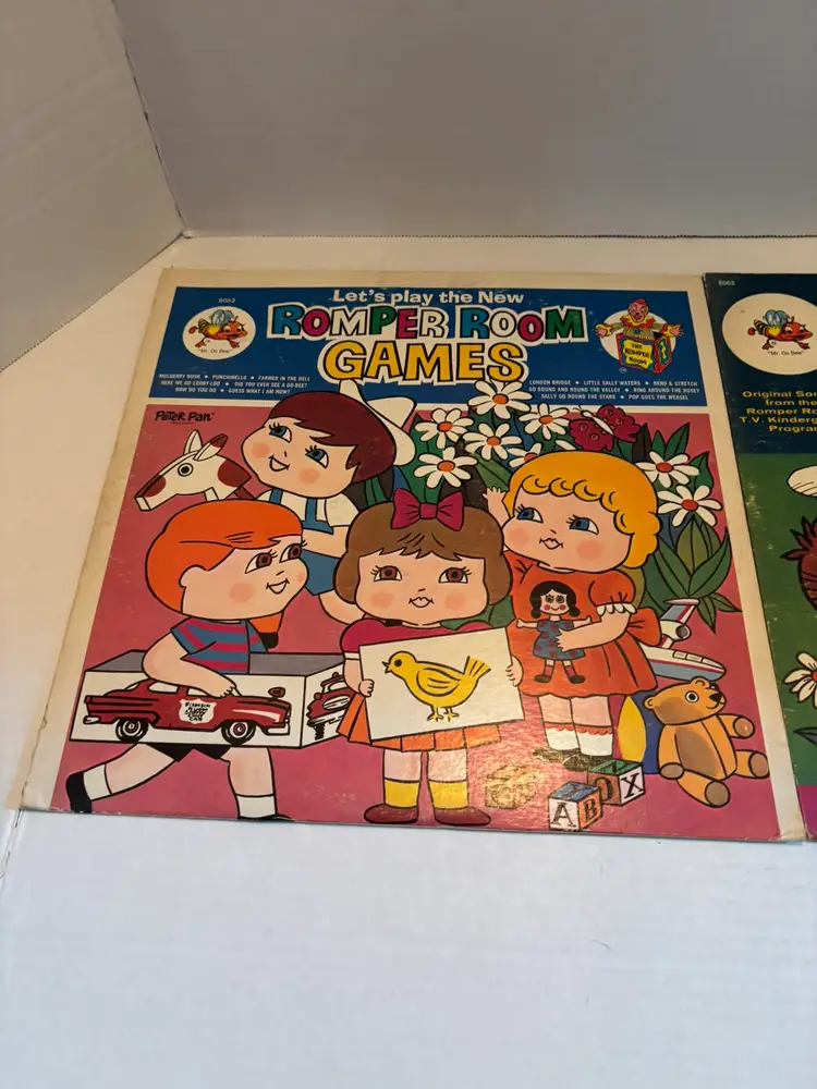 This vintage vinyl lot includes 2 Romper Room LPs by Peter Pan Records, featuring various artists and children's music. The 12" records are made of vinyl and showcase colorful artwork, reflecting the happy and nostalgic vibe of the era. Perfect for collectors or fans of classic children's music, these LPs offer a glimpse into the past with their charming tunes and playful melodies. Ideal for reliving childhood memories or adding a touch of whimsy to any music collection.