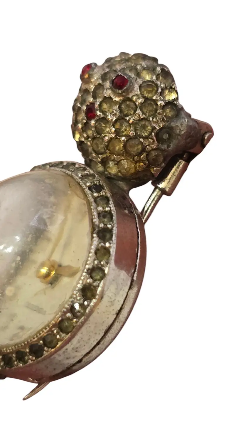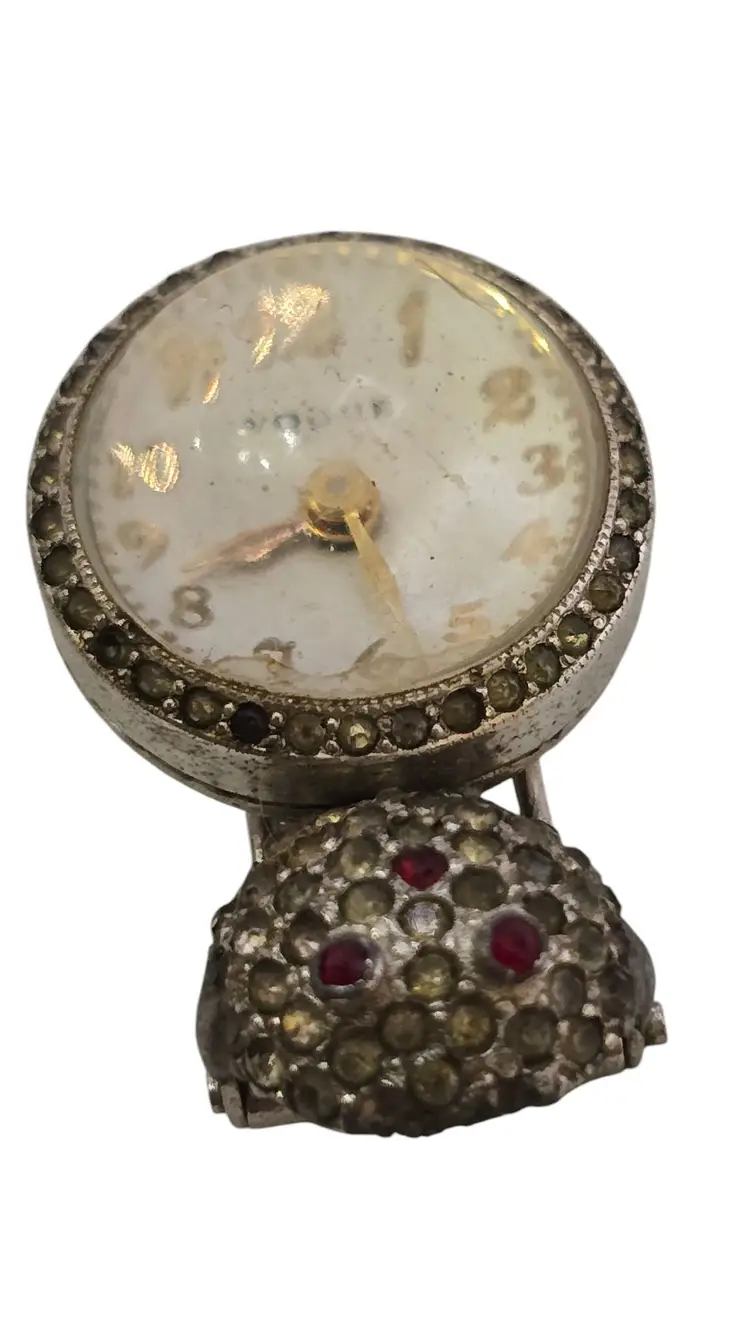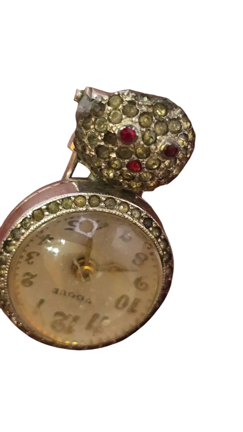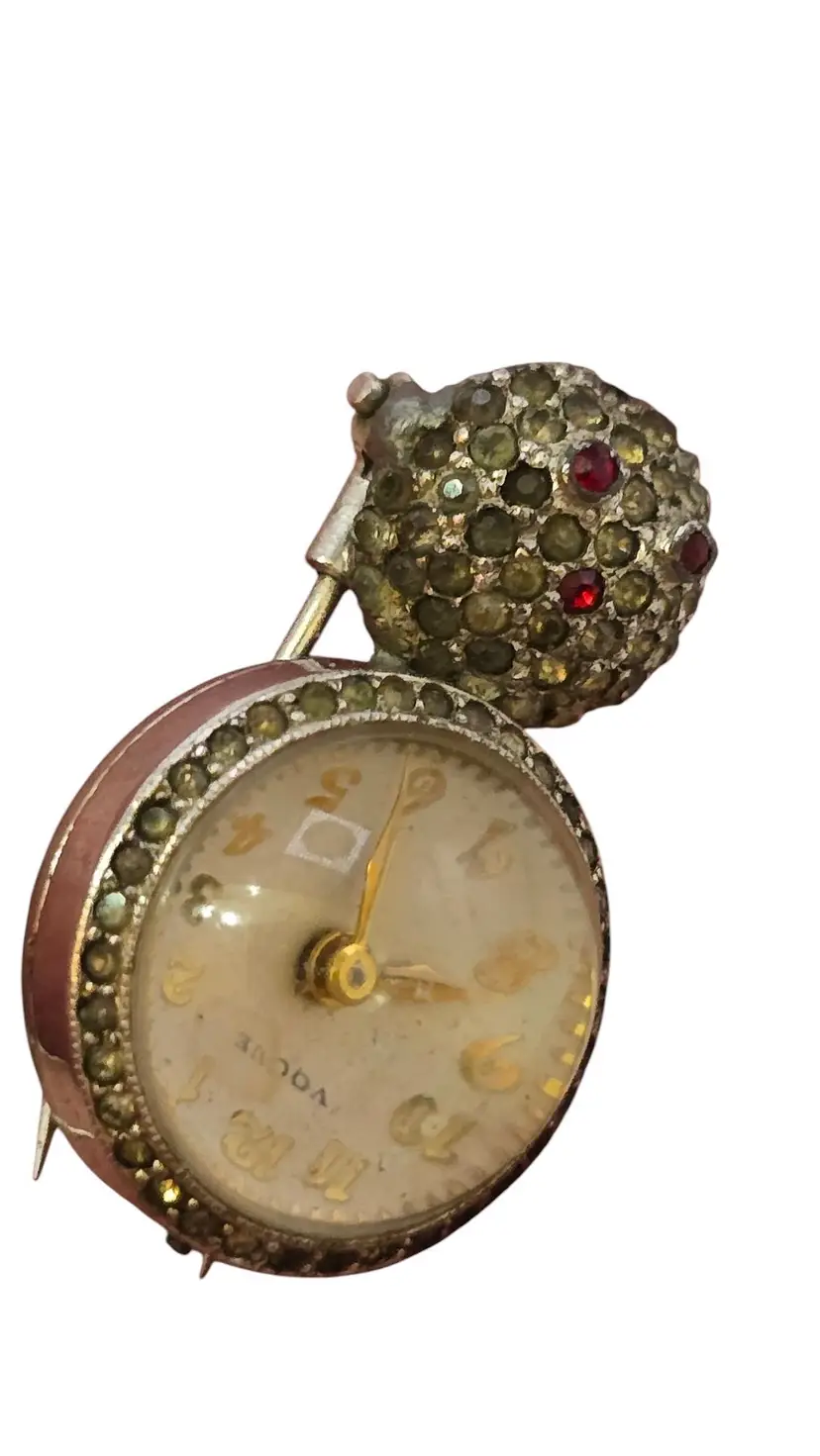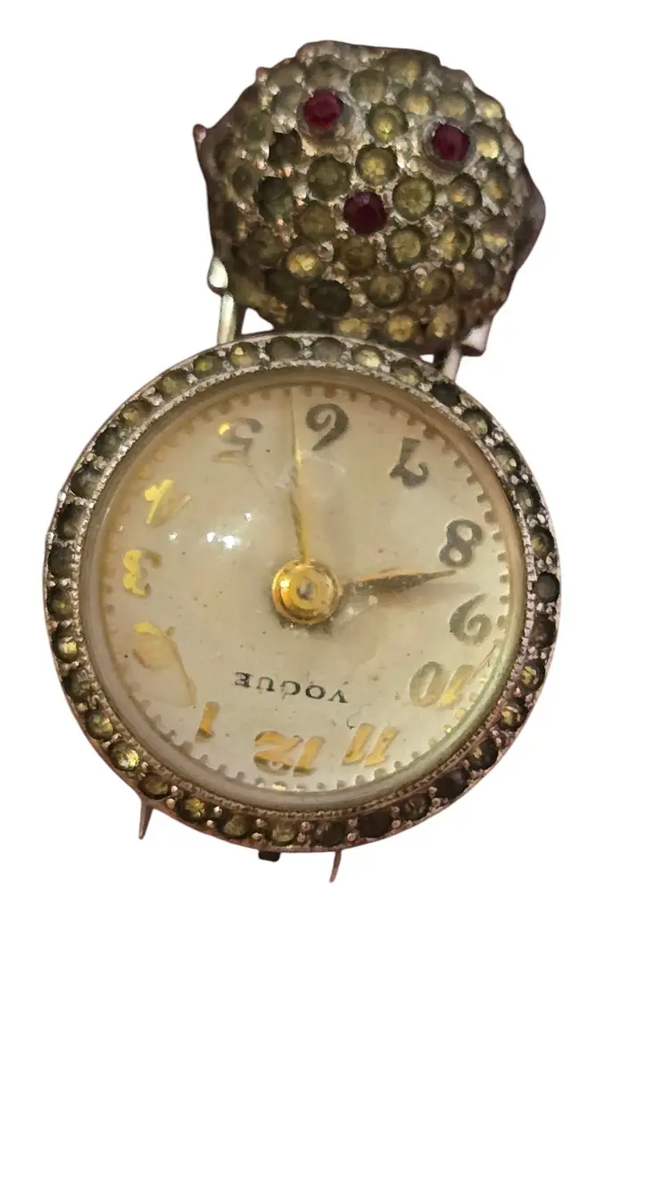 Size: 1" Condition: Good vintage Signed: Vogue Details: Beautiful bubble glass over the watch. Currently the watch is not working. It has few darkened stones.