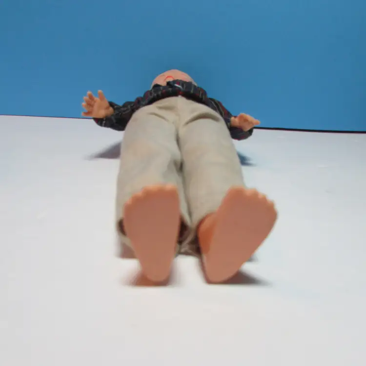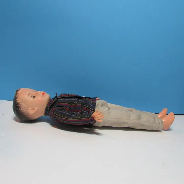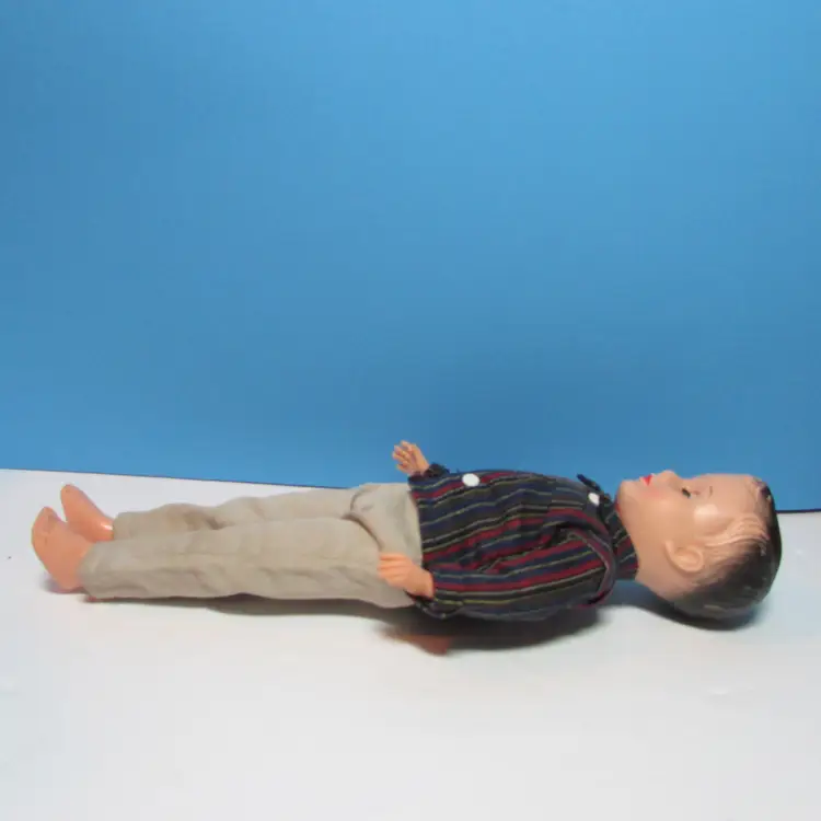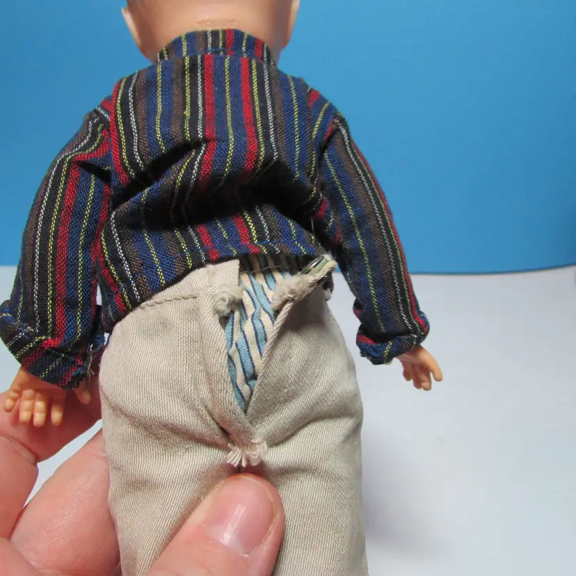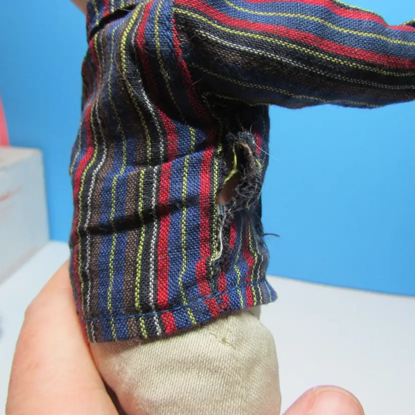 This adorable doll has some wear, the shirt and pants have holes, but still nice to display on doll. He does have his boxers, but the elastic has stretched out. He is about 10" tall. This is shipped from a smoke free home. Thanks for looking!