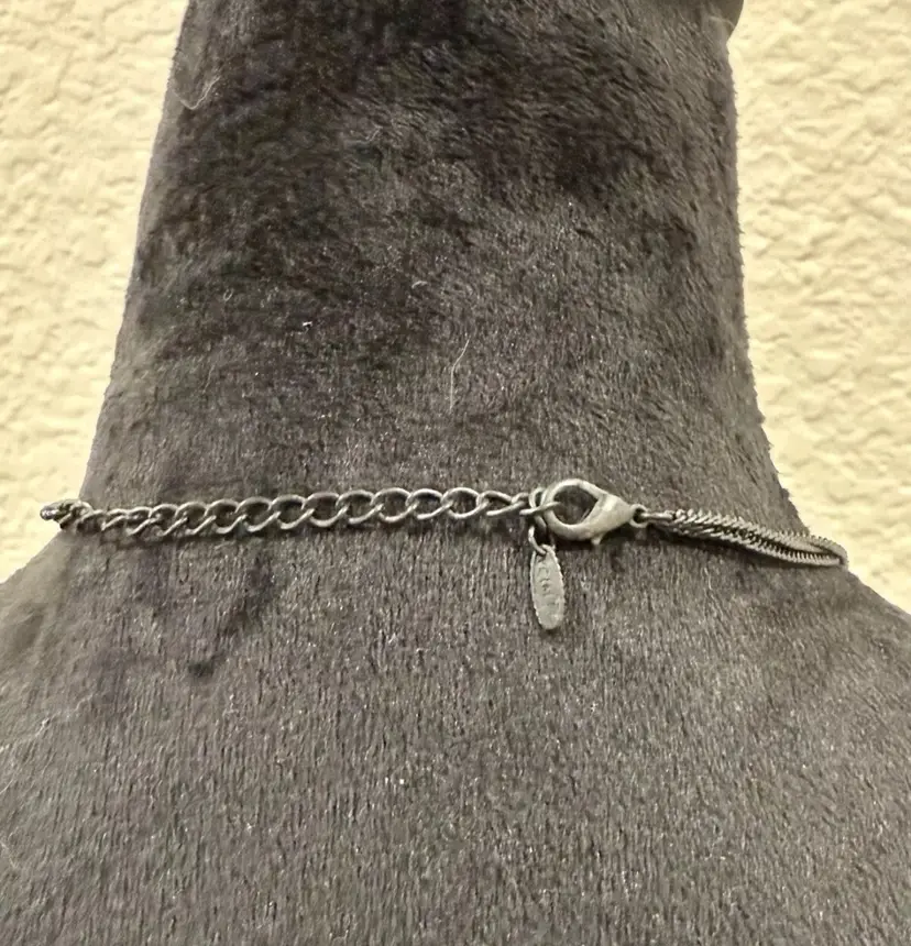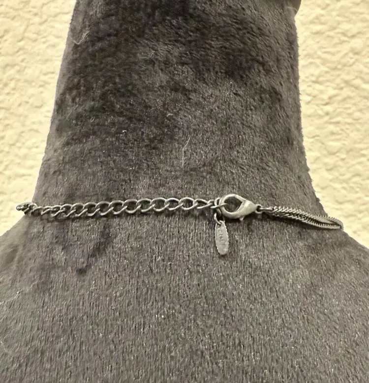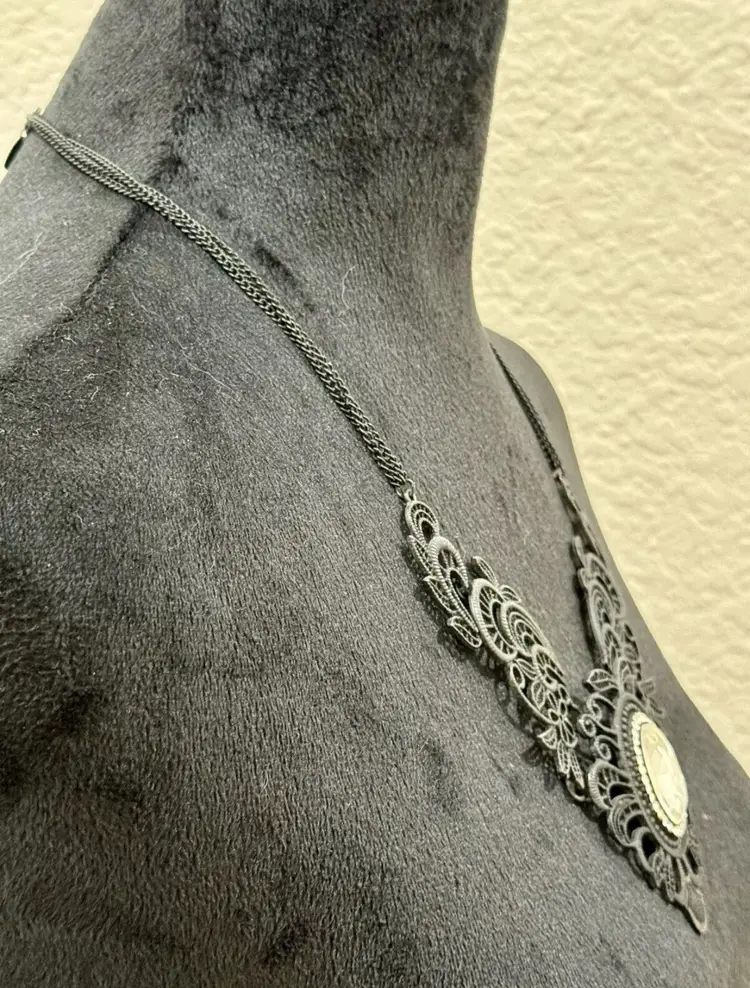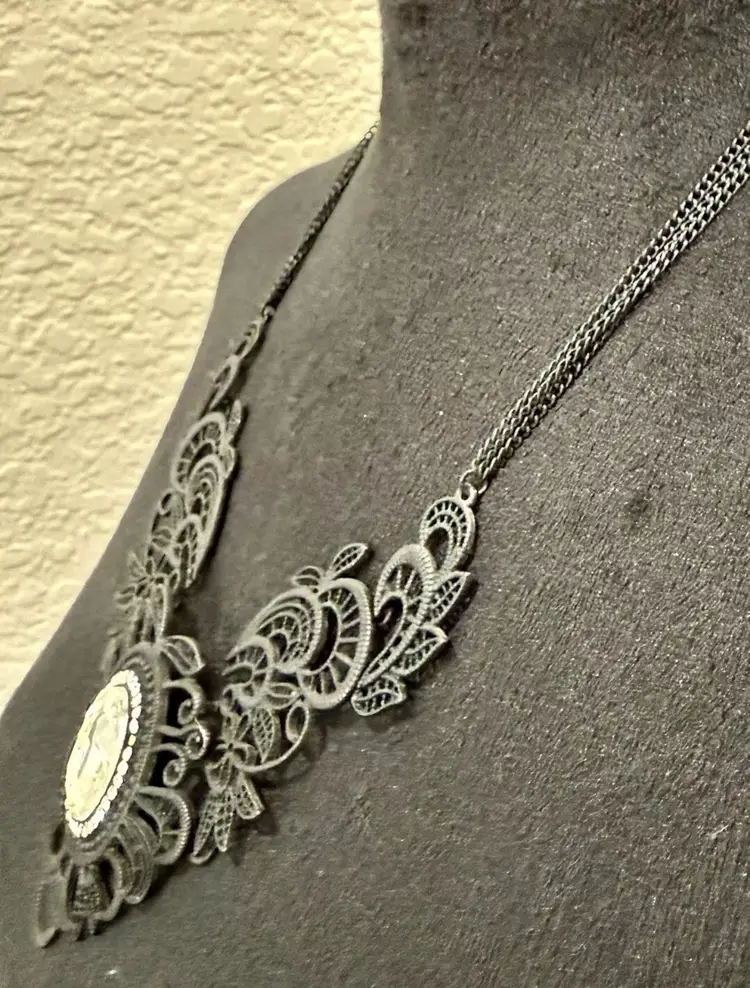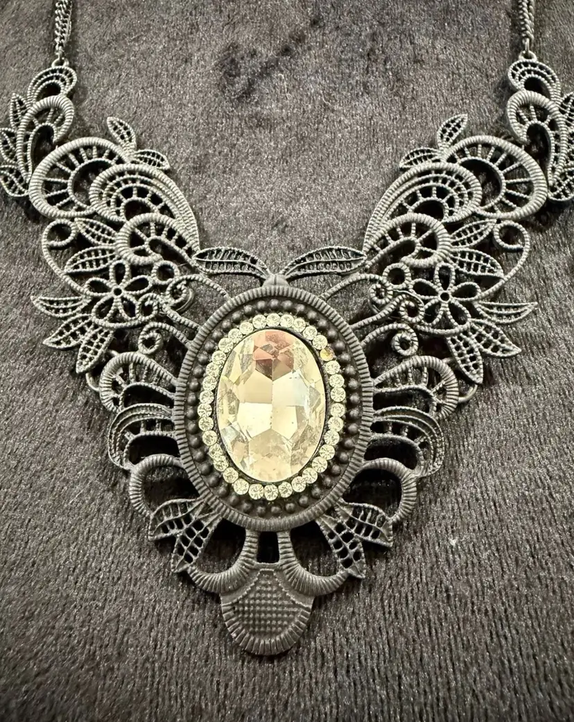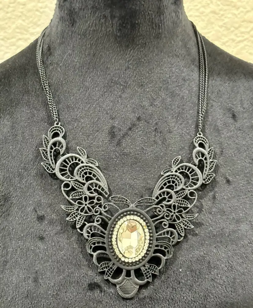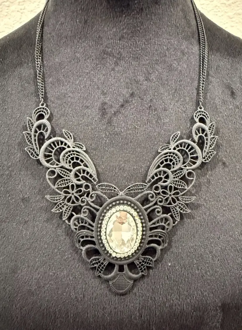 Vintage VOLM stamped Necklace- Gothic Lace and Crystal Double Strand Bib Piece