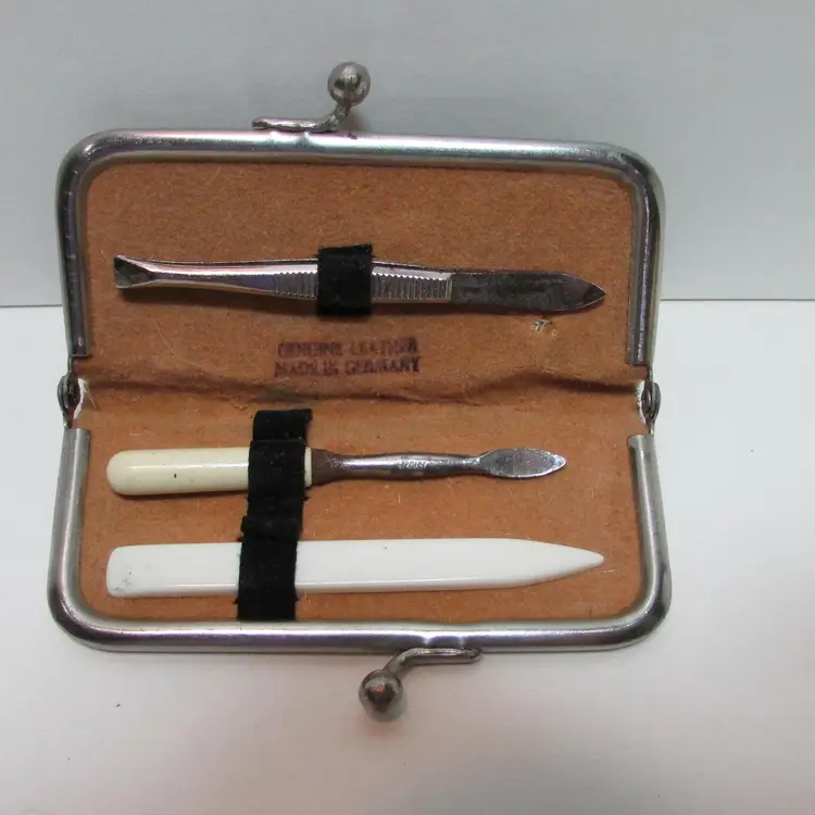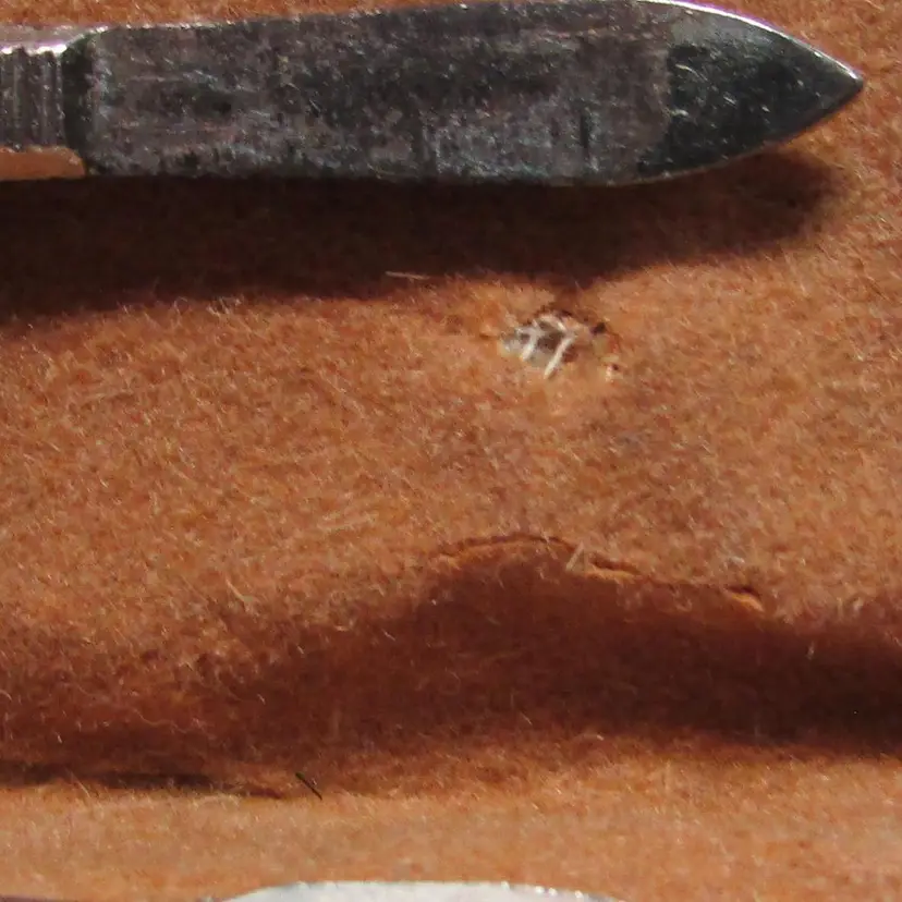 This lovely piece has some wear, there is a small rip on the inside and some wear on the 3 pieces. It is about 2" x 3" x 1/4". This is shipped from a smoke free home. Thanks for looking! loc-fb11