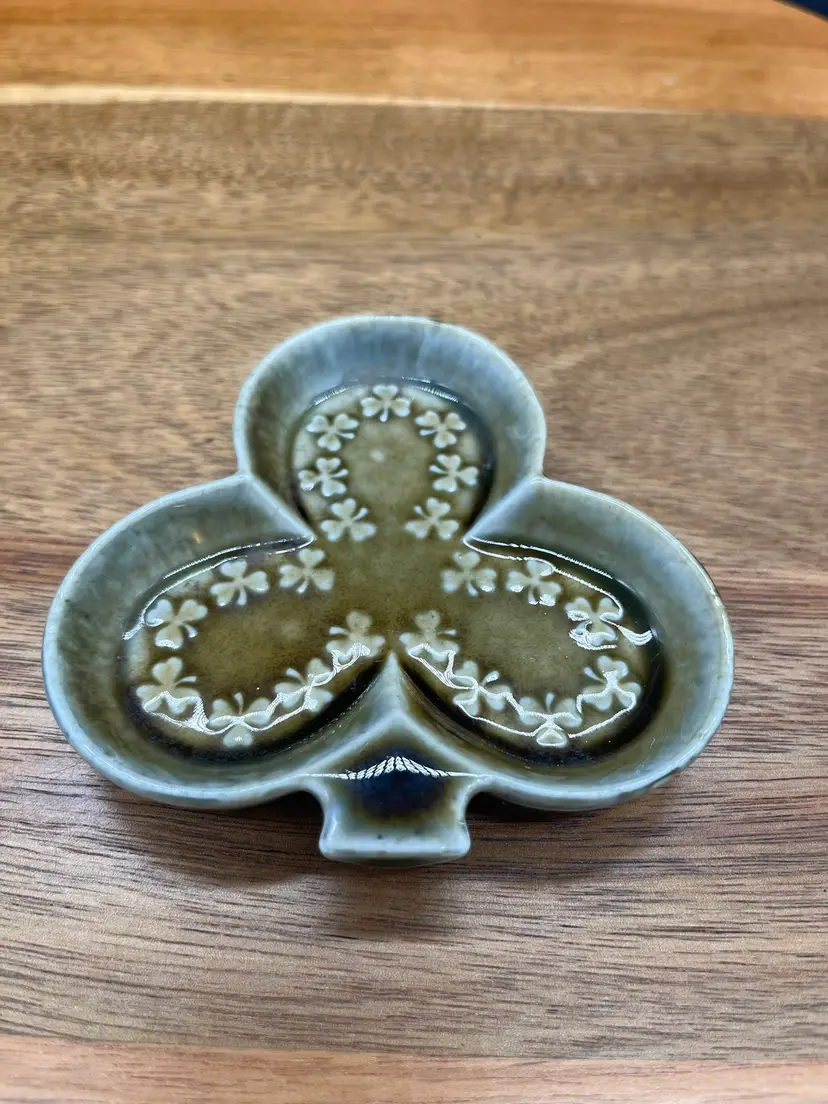 Vintage Wade Irish Coarmagh Shamrock-Shaped Trinket Dish Perfect gift or decor for St. Patrick's Day Made in Ireland at the Portmeirion factory Mid 20th Century Excellent condition 3.5" x 3.5"